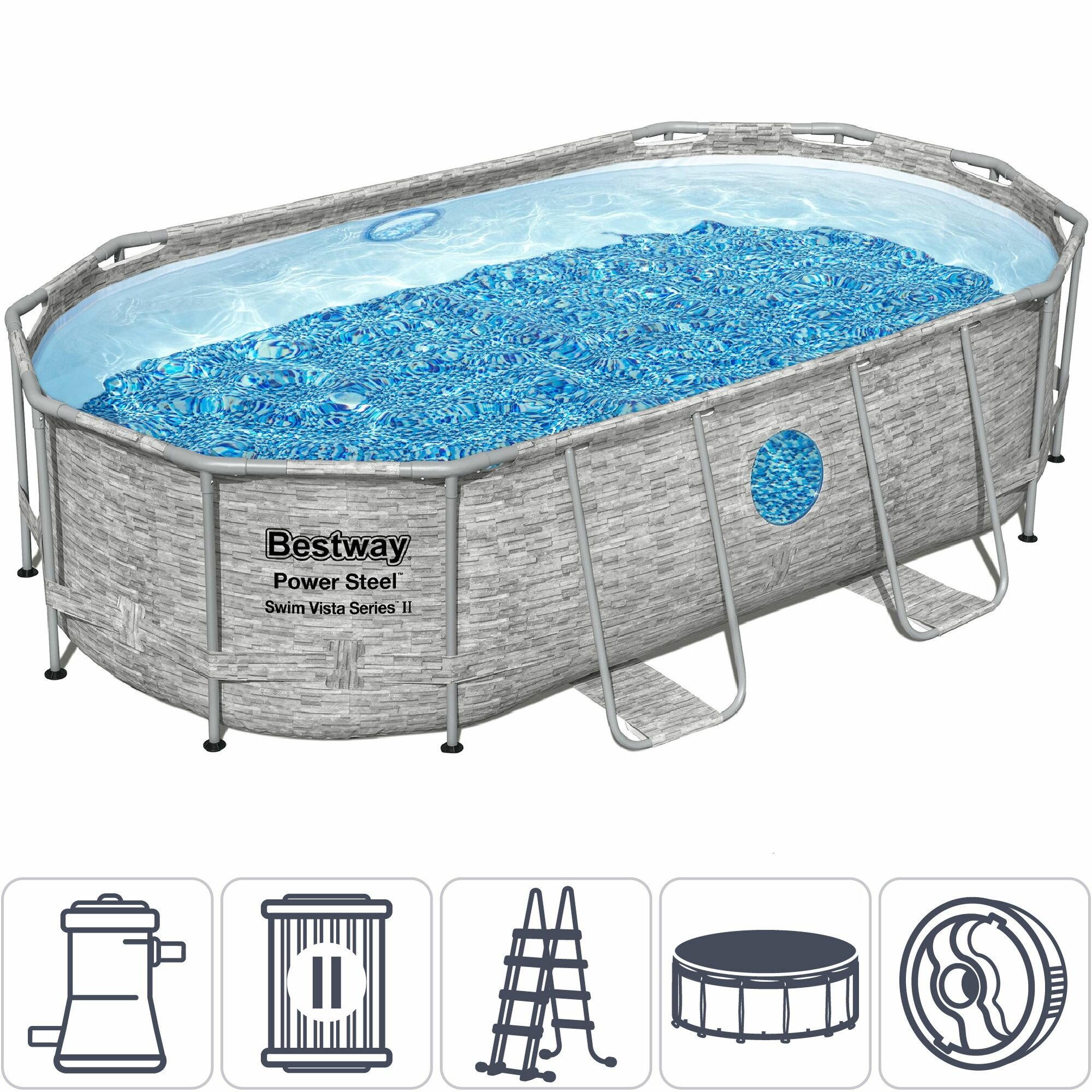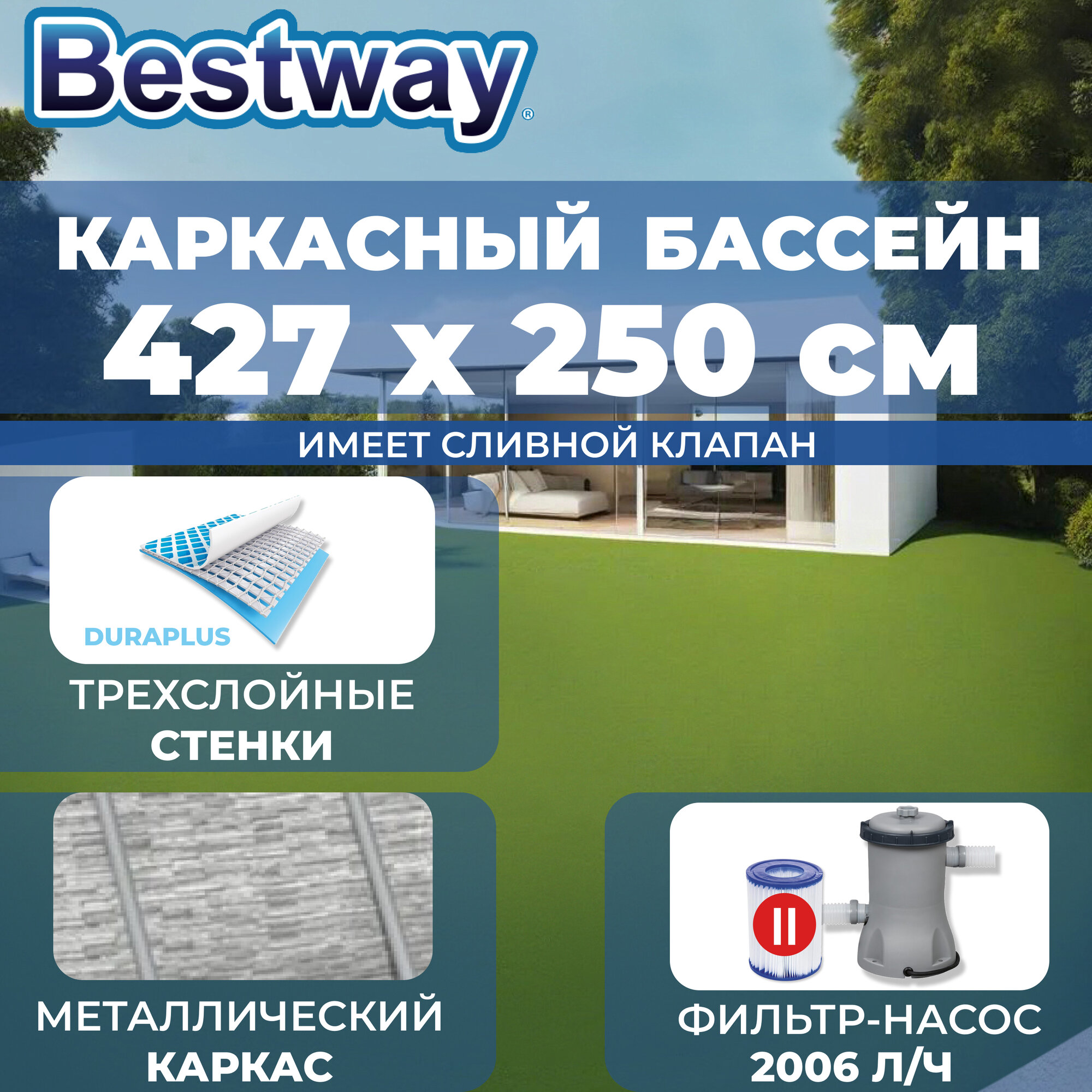 Купить Каркасный бассейн Bestway Power Steel Swim Vista Series 56714 под камень, 427х250х100 см, (комплект)