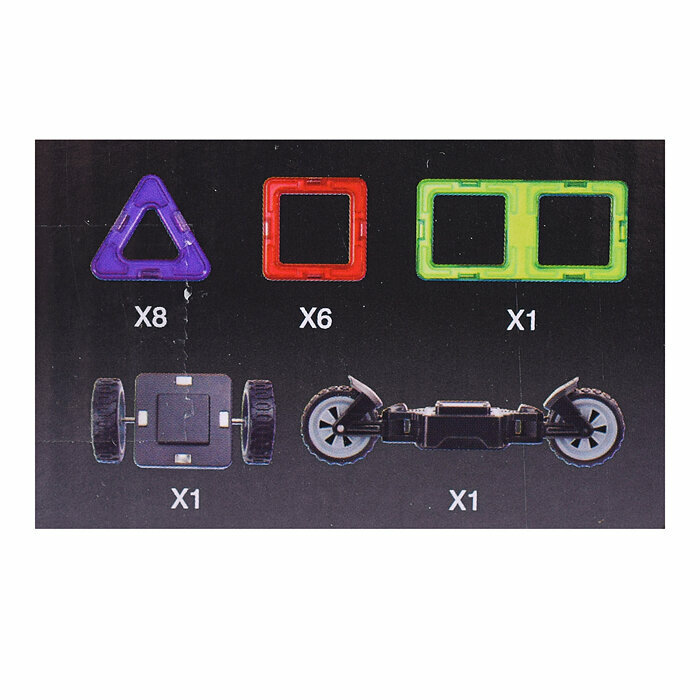 Конструктор магнитный, 16 деталей, с колёсами
