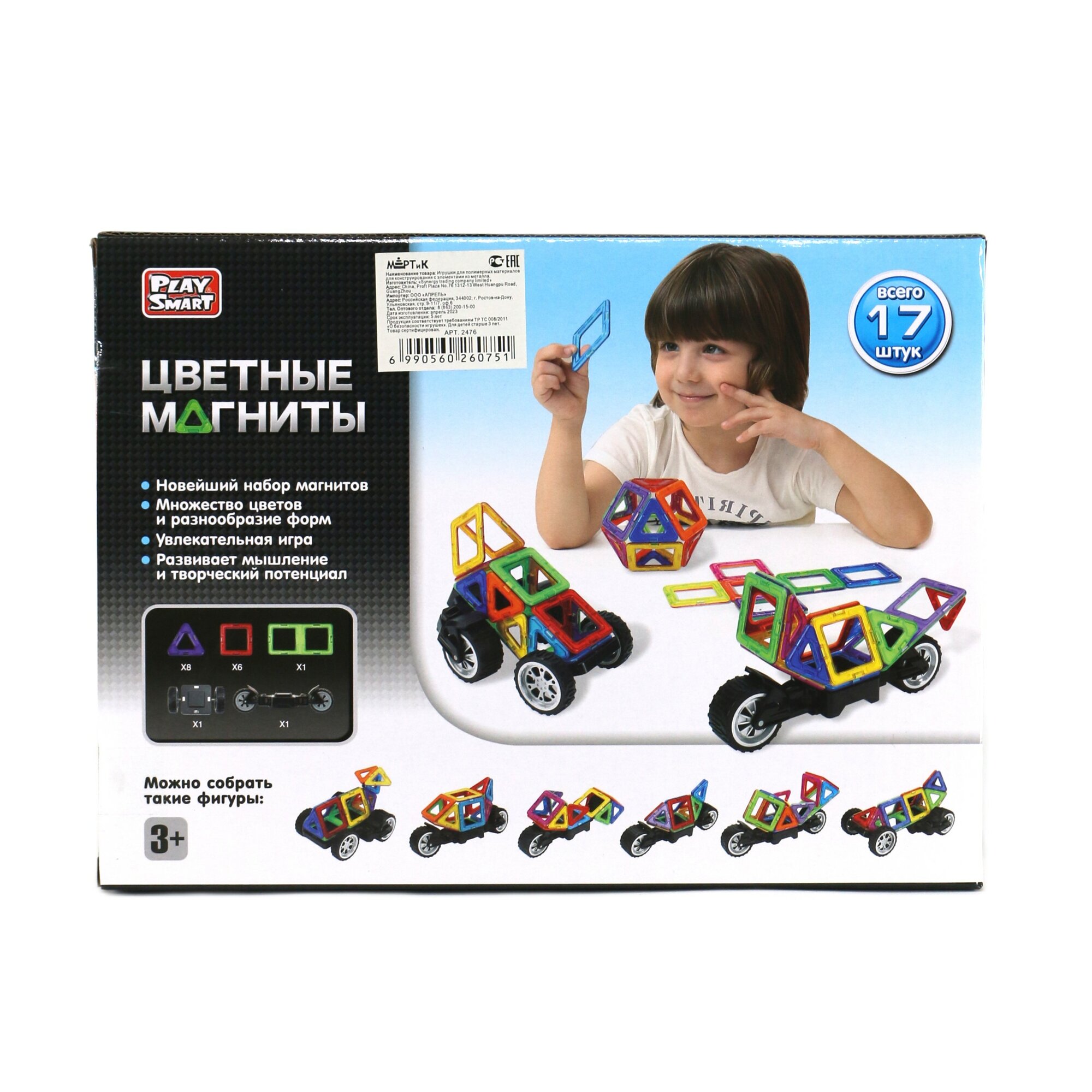 Конструктор 2476 магнитный 17 дет, в коробке
