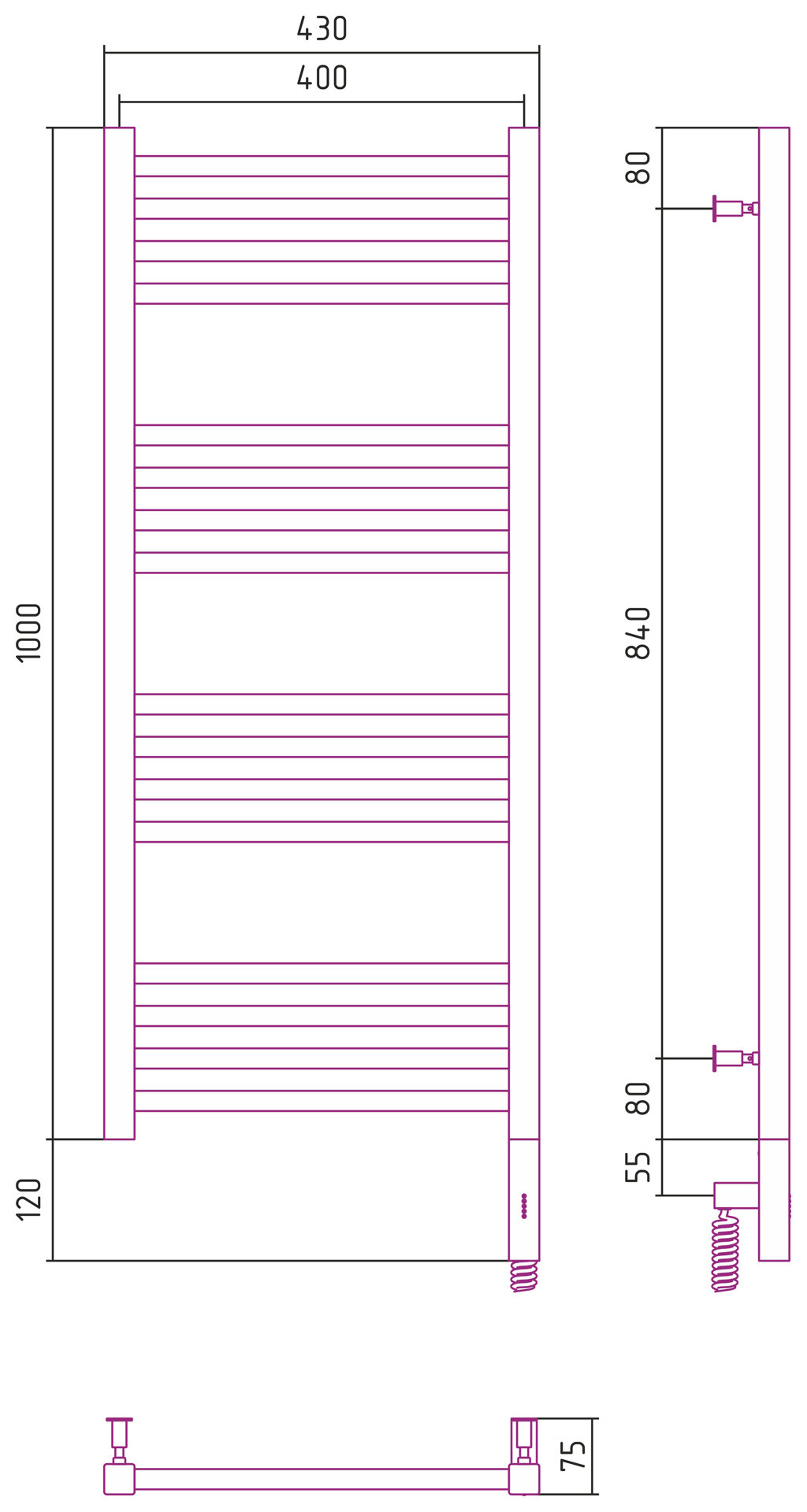 Полотенцесушитель электрический Сунержа Модус 3.0 1000х400 МЭМ правый Матовый чёрный