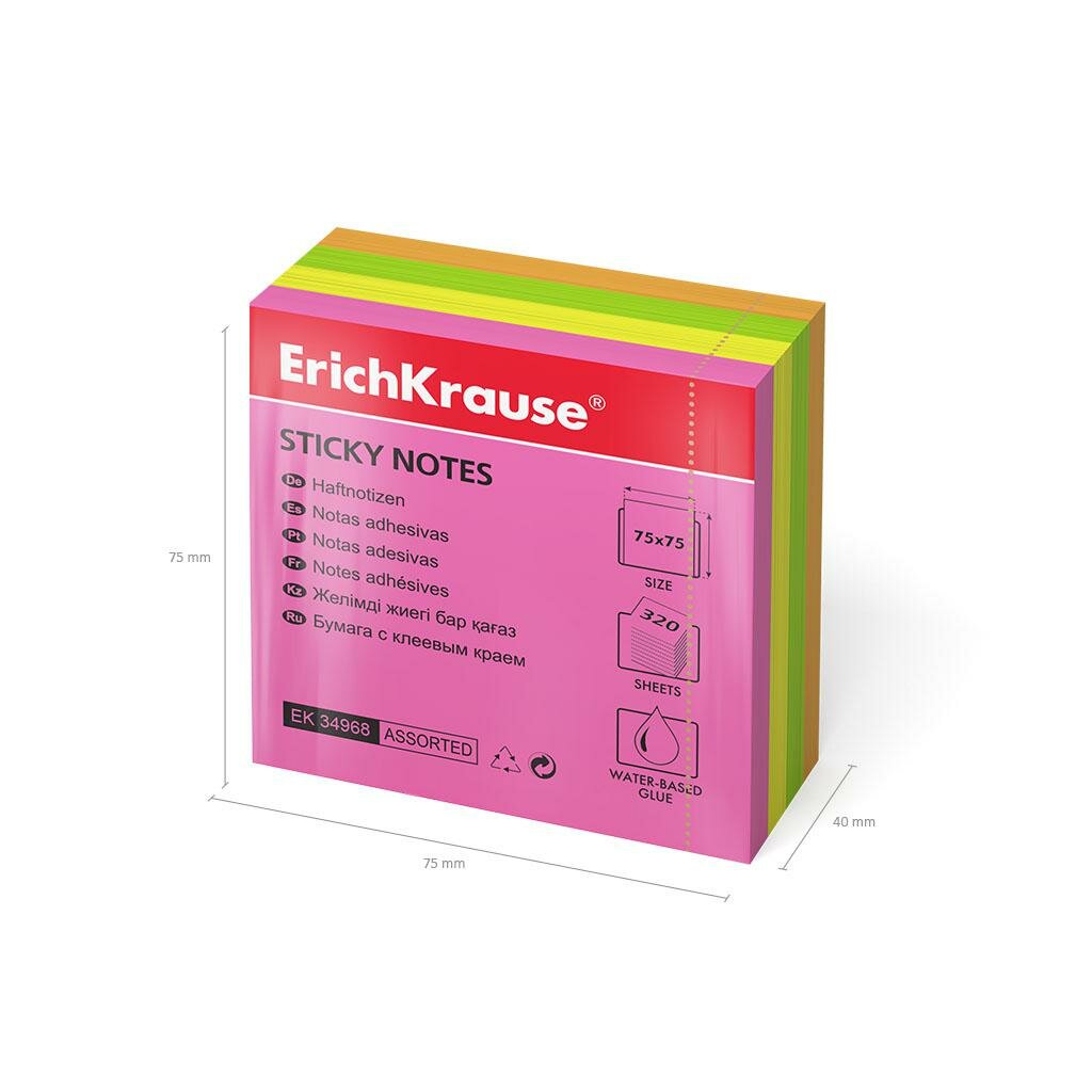 Бумага для заметок Erich Krause с клеевым краем Neon, 75х75 мм, 320 листов, 4 цвета (34968)