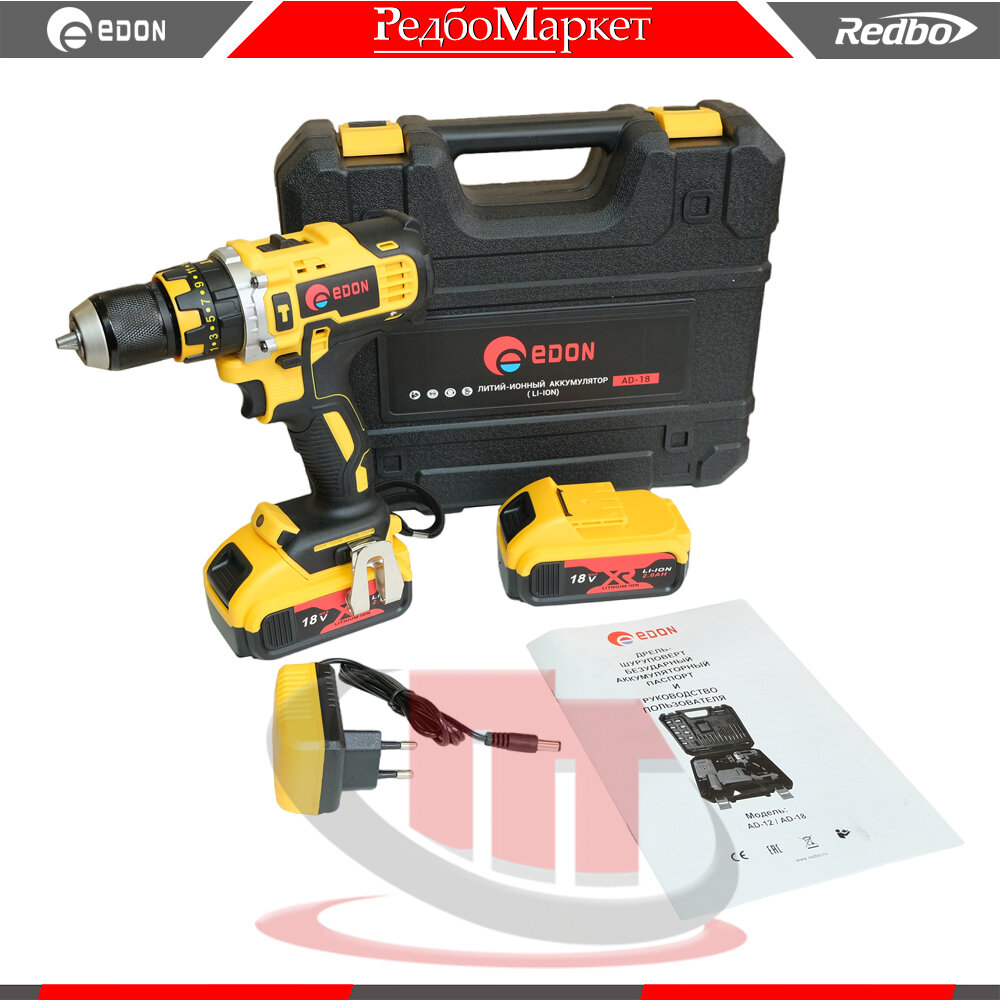 Дрель-шуруповерт аккумуляторная Edon AD-18 + набор