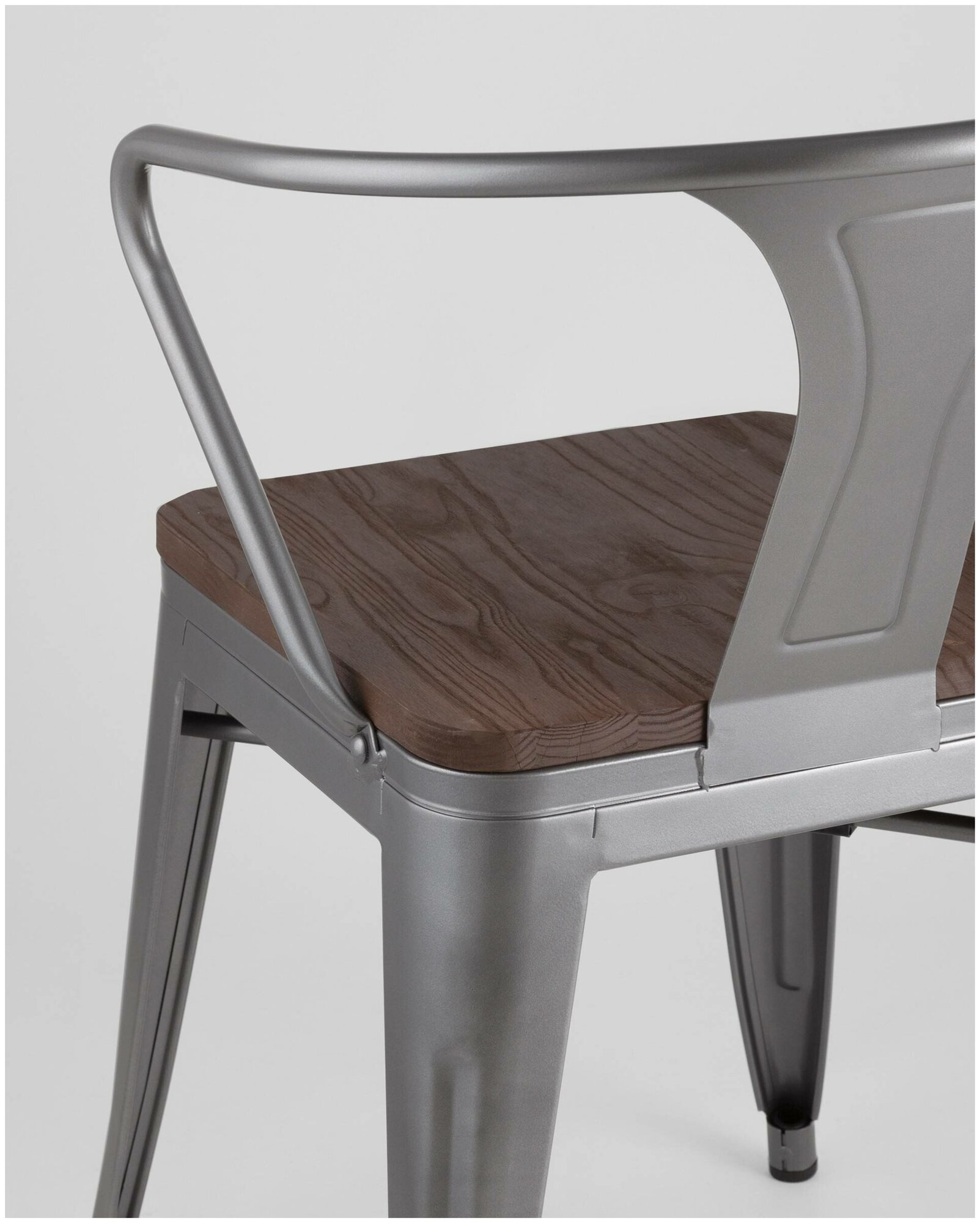 Стул TOLIX ARM WOOD серебристый матовый + темное дерево(комплект 2 шт)