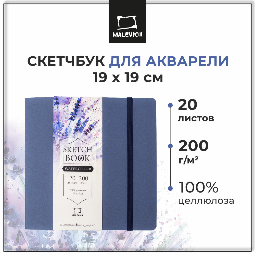 СохранитьСкетчбук Малевичъ для акварели Waterfall "Nature", мелкая фактура, синий, 200 г/м, 19х19, 20л интересное: