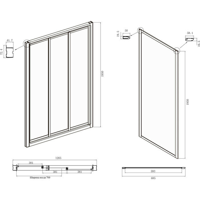 | Габариты (ГхВхШ) | 70x195x130 см |