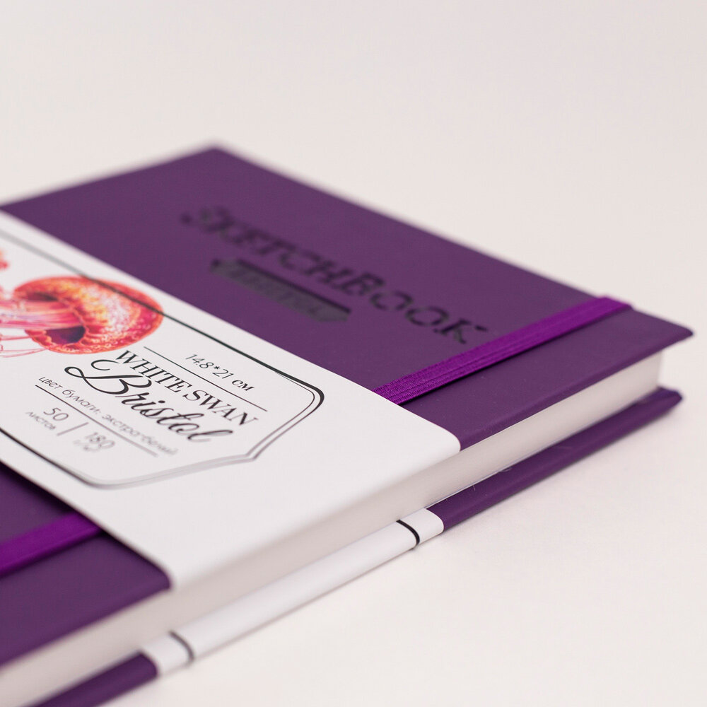 Скетчбук для графики и маркеров White Swan Bristol, фиолетовый, 180 г/м, А5 см, 50л