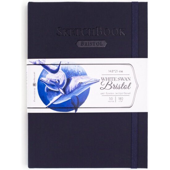 Скетчбук для графики и маркеров White Swan Bristol, индиго, 180 г/м, А5 см, 50л
