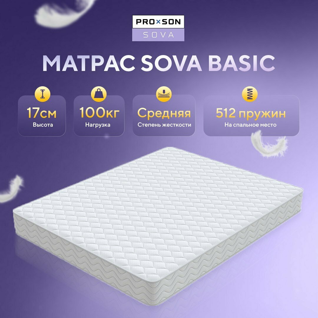 Матрас 140х195 ProSon Sova Basic, независимые пружины, cредне-жёсткий, пенополиуретан, двуспальный 195х140
