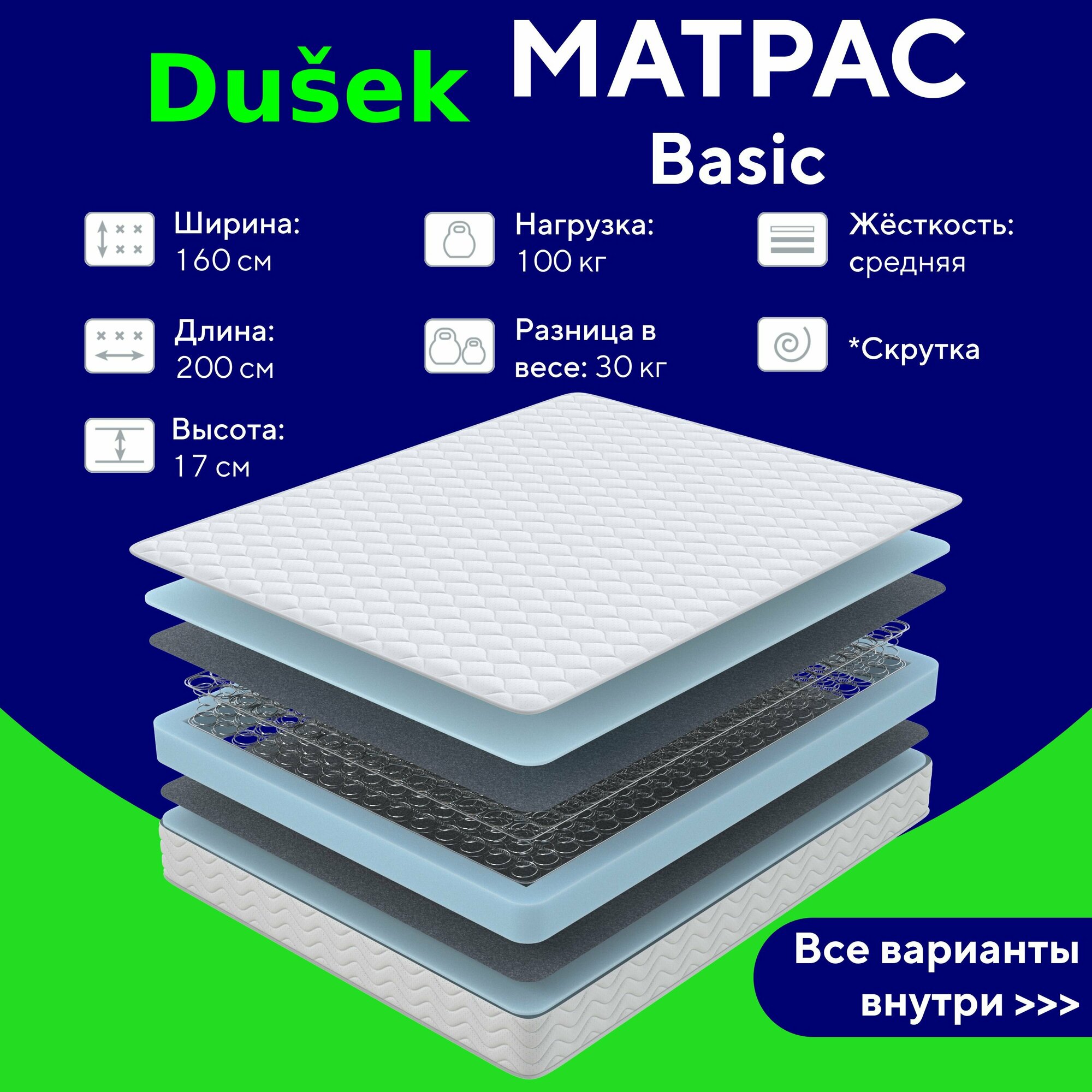 Ортопедический матрас, Анатомический матрас PROSON SOVA Basic, Зависимые пружины, 160х190 см