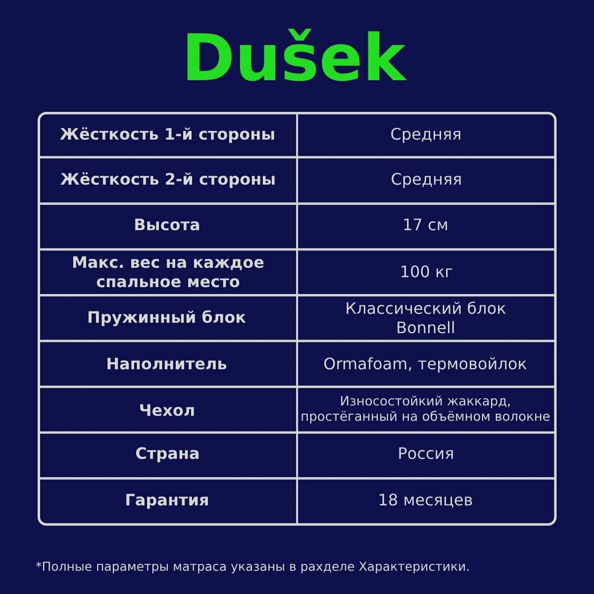 | Дополнительная информация | гипоаллергенный наполнитель; антистатическое покрытие; воздушные каналы; зоны комфорта; стеганое покрытие |