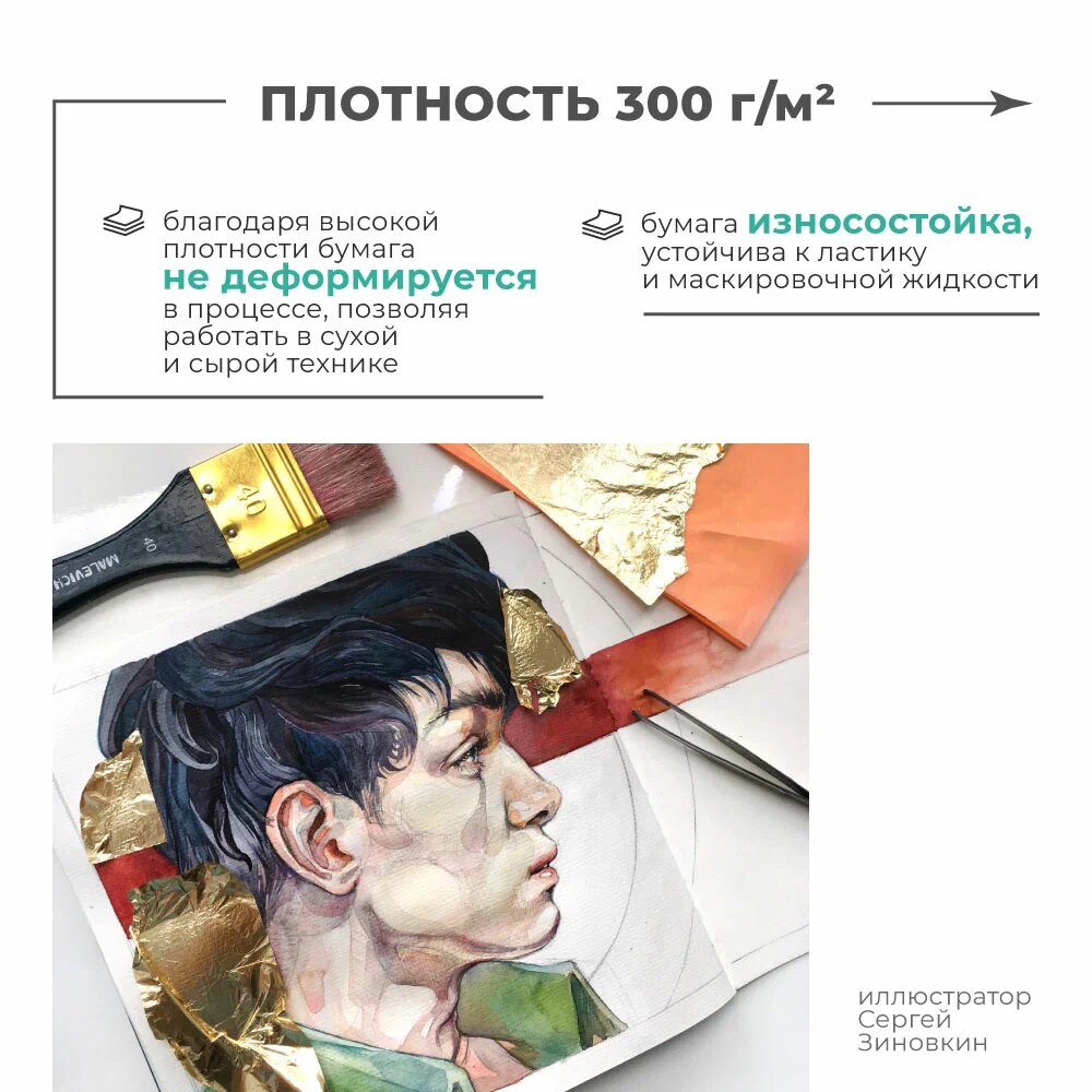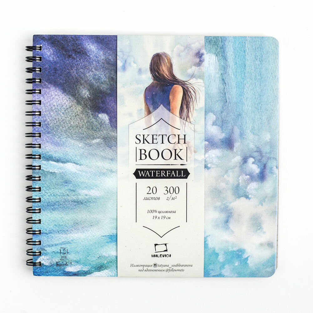 Скетчбук для акварели Малевичъ Waterfall 19 х 19 см, 300 г/м², 20 л. интересное: