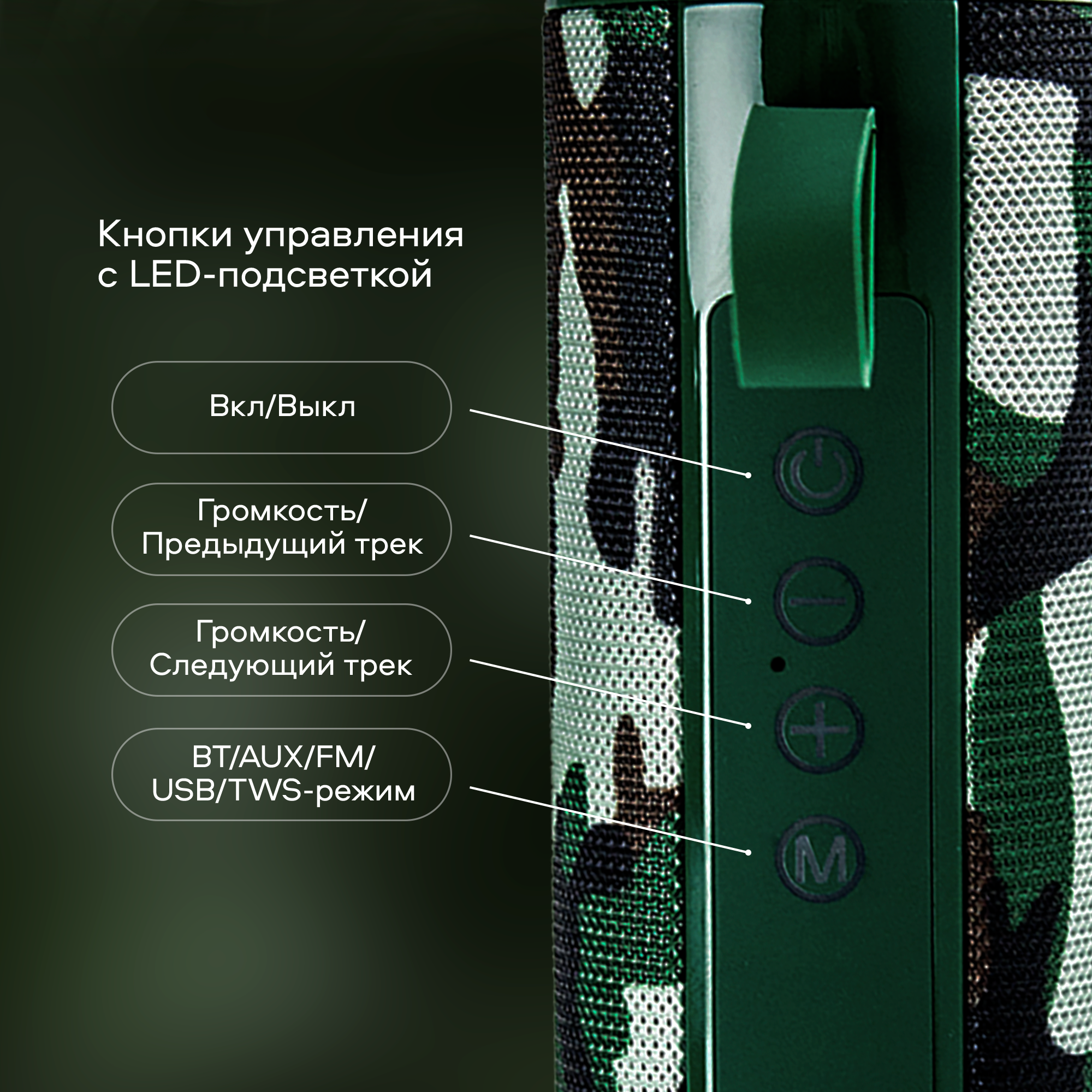 Портативная колонка bluetooth 5.0, WALKER, WSP-110, 2 динамика по 5Вт, блютуз колонка беспроводная, колонка музыкальная как jbl акустика, камуфляж