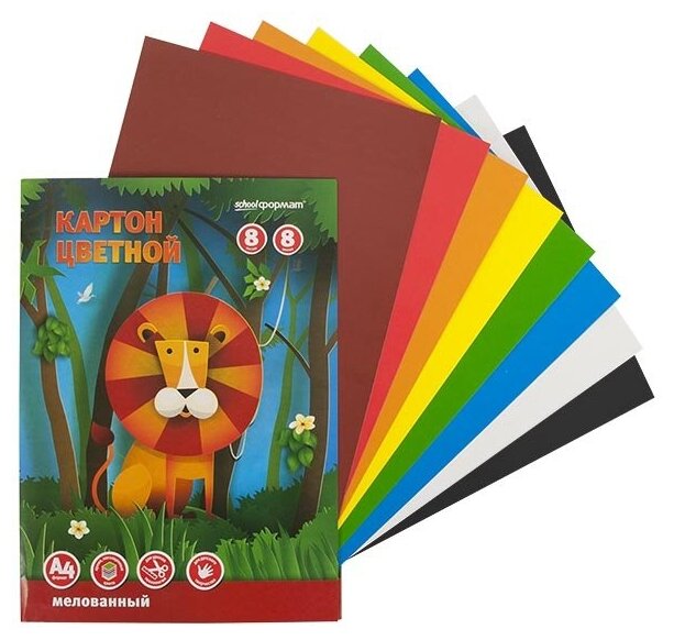 Картон цветной мелованный schoolформат (8 листов, 8 цветов, А4) интересное: