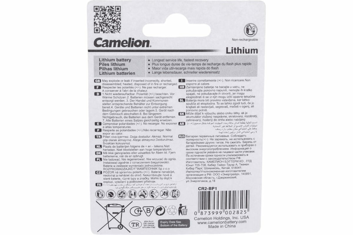 CR2 - Camelion CR2-BP1 (1 штука) .