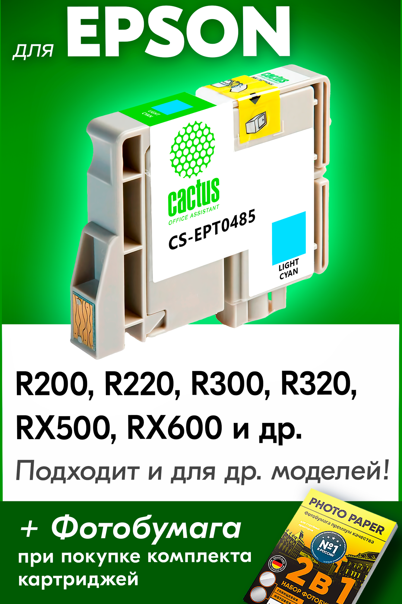 СохранитьКартридж для Epson T0485, Epson Stylus Photo R200, R220, R300, RX600, R340 и др. с краской (тонером) Светло-голубой/Light Blue новый заправляемый интересное: