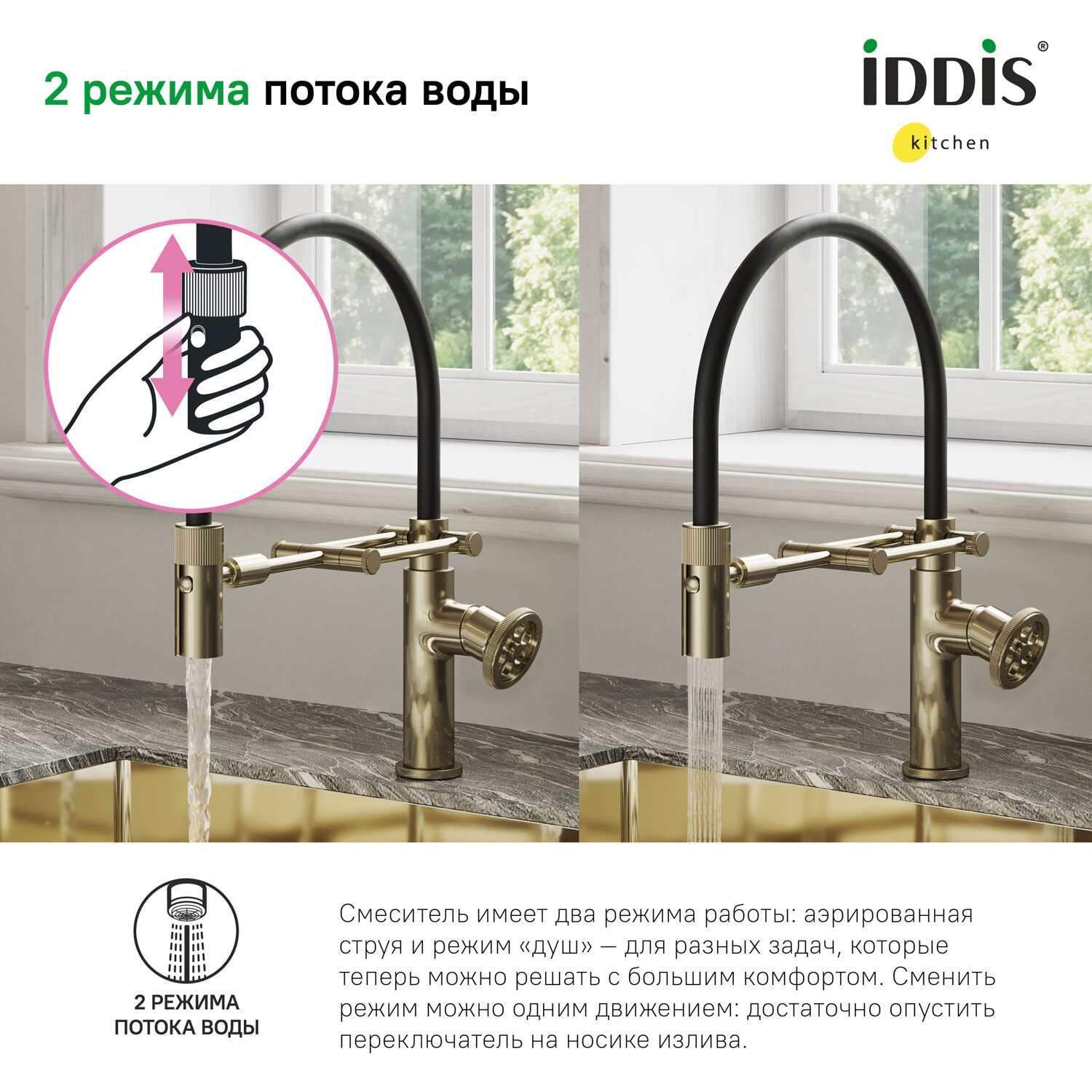 СохранитьСмеситель для кухни IDDIS Grange GRAMGFLi05 с гибким изливом матовое золото интересное: