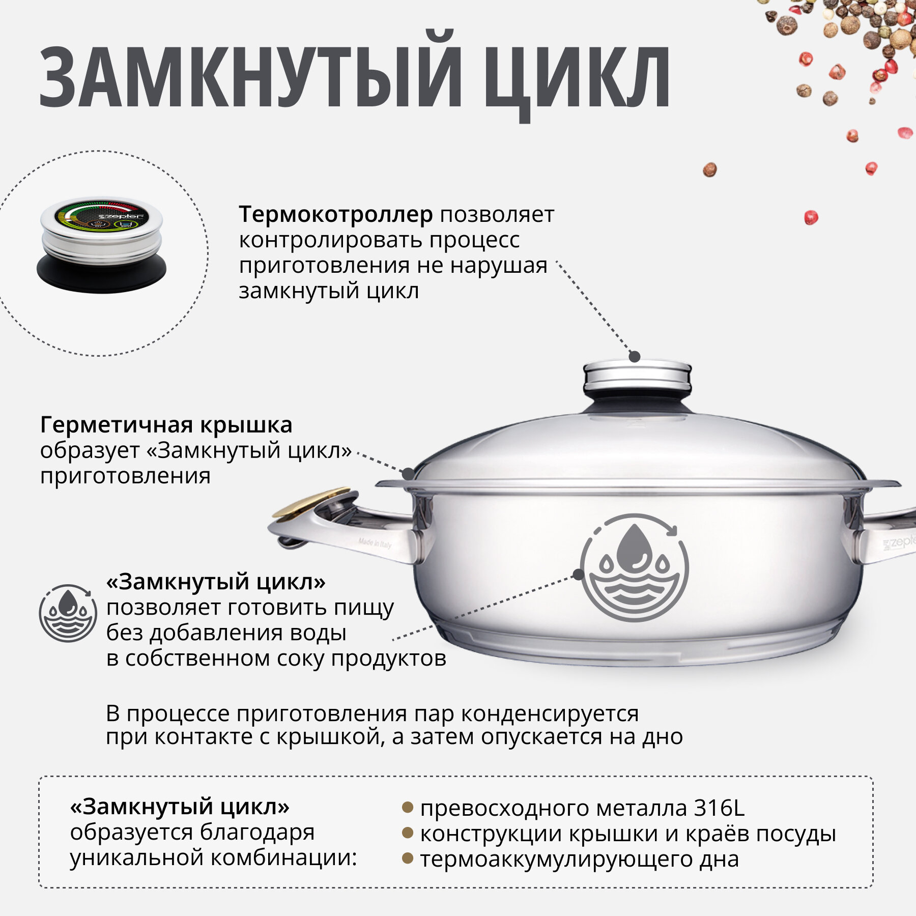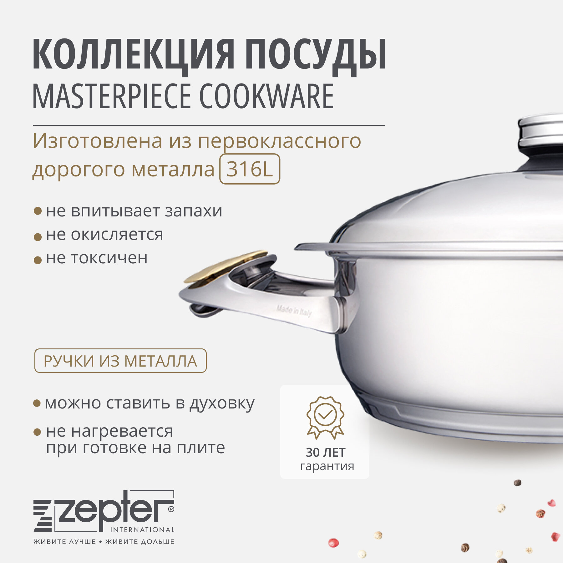 Сотейник Zepter 3 л, D24 см, высота 6,8 см, нержавеющая сталь, (URA-технология), Цептер