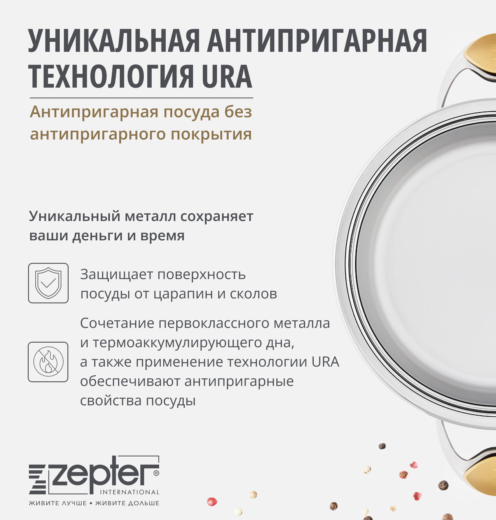 Купить Сотейник Zepter 3л с толстым дном и крышкой, антипигарная технология URA/ 24см