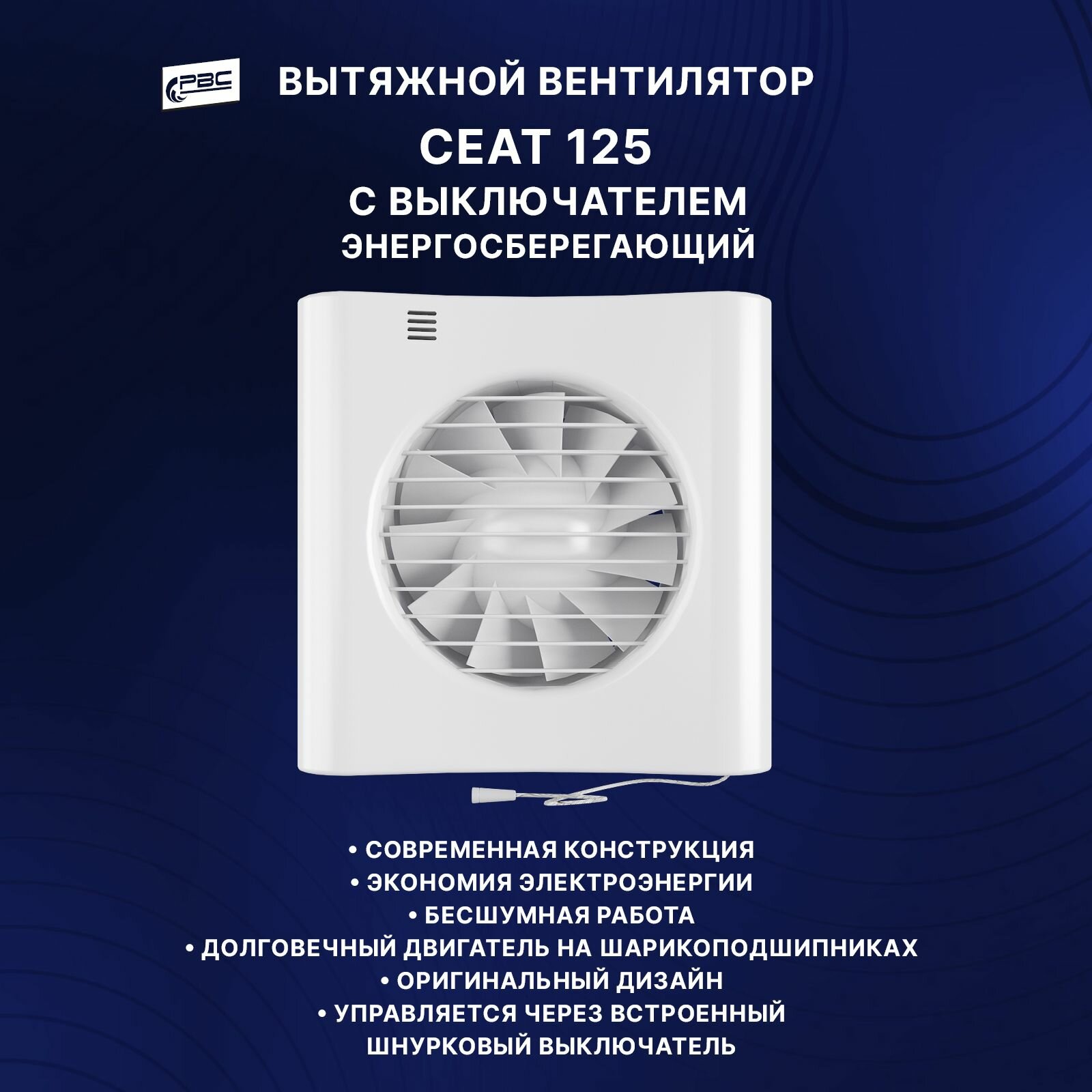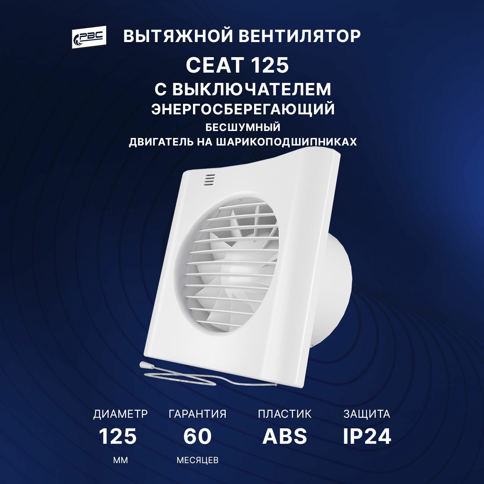 Вентилятор вытяжной Рвс Сеат 125 энергосберегающий, 17 Вт, 28 дБ, 177 м3/ч, шнурковый выключатель