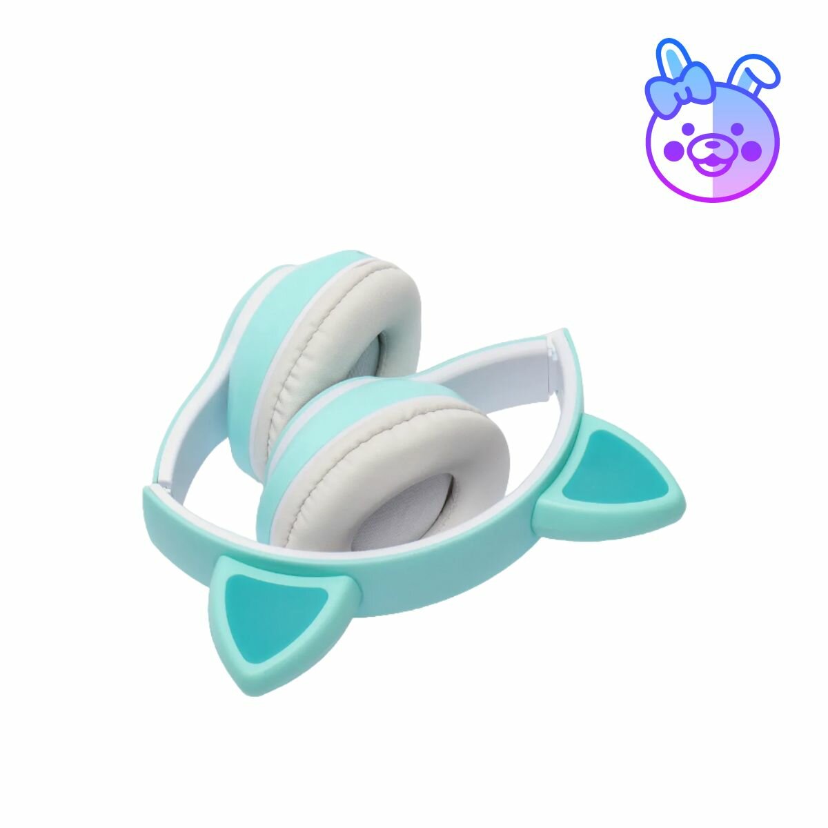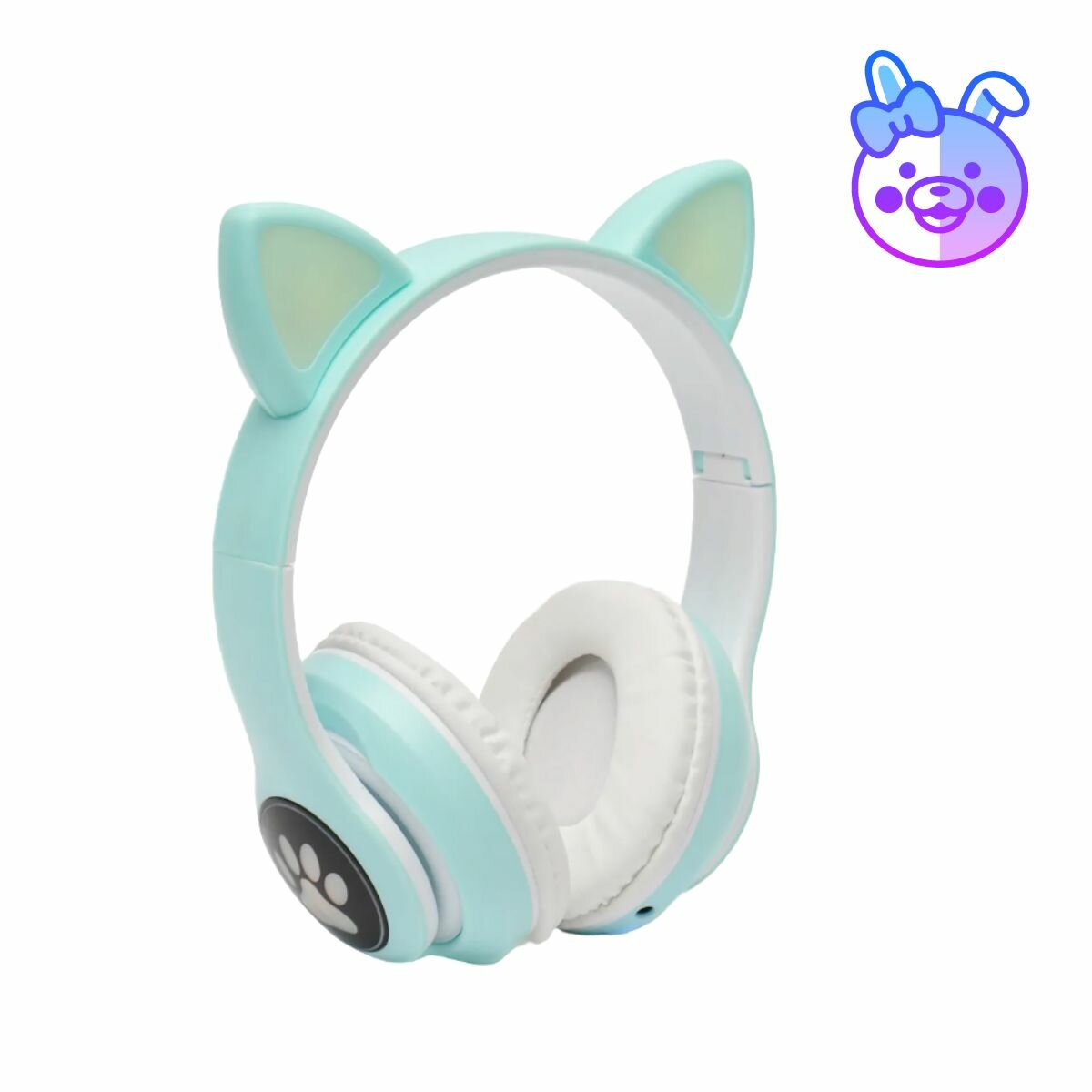 Наушники беспроводные детские с ушками / Светящиеся детские беспроводные наушники с ушками / Беспроводные наушники детские / Наушники с ушами мятные