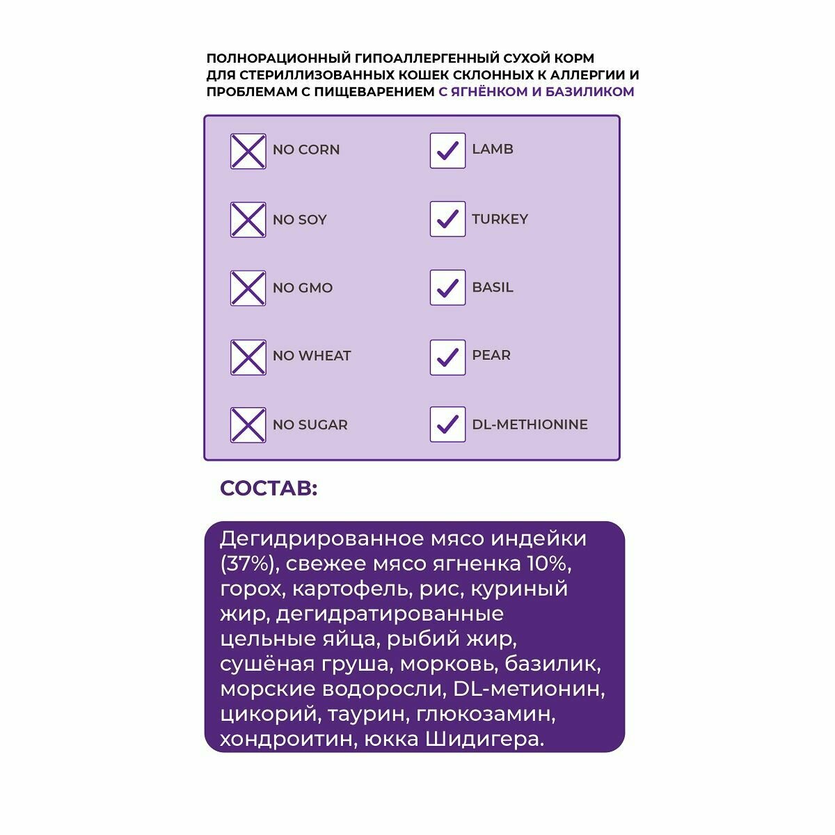 СохранитьBest Dinner Holistic Hypoallergenic Adult Sterilised Cat сухой корм для стерилизованных кошек с проблемами пищеварения с ягненком и базиликом - 1,5 кг интересное: