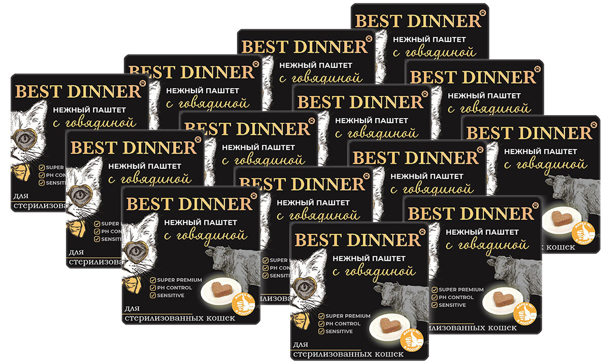 Купить BEST DINNER для взрослых кастрированных котов и стерилизованных кошек паштет с говядиной 100г ламист 100 гр х 14 шт
