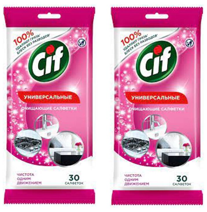 Купить СИФ Влажные салфетки д/очищ. поверхностей универсальные, 30шт (2 уп в наборе)