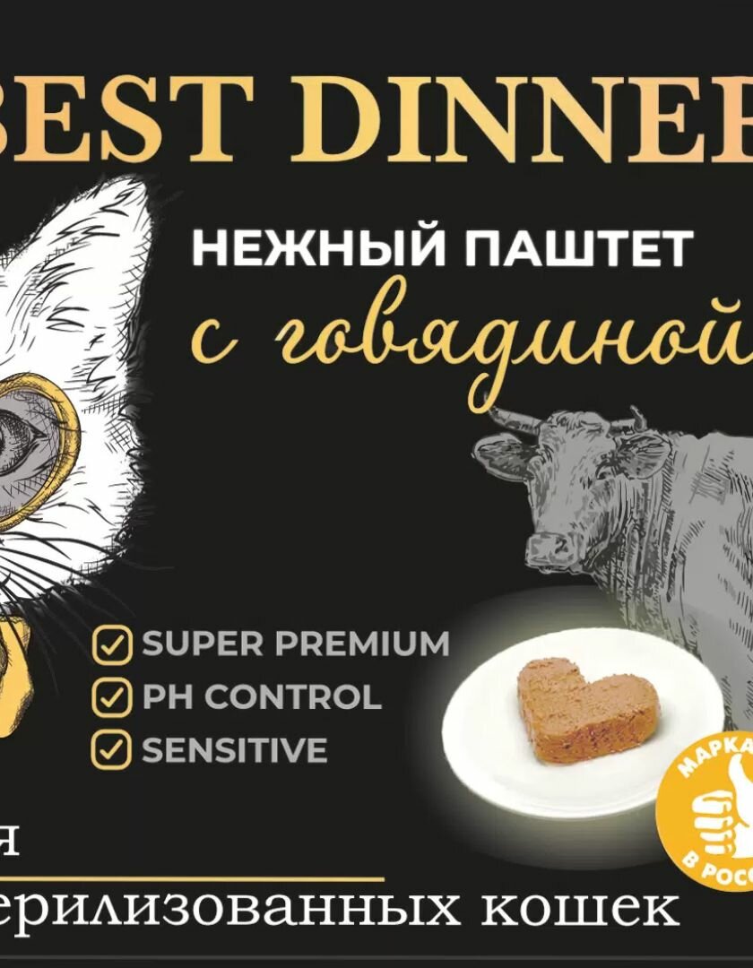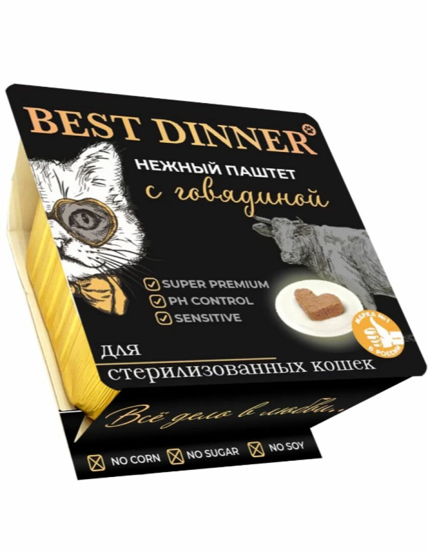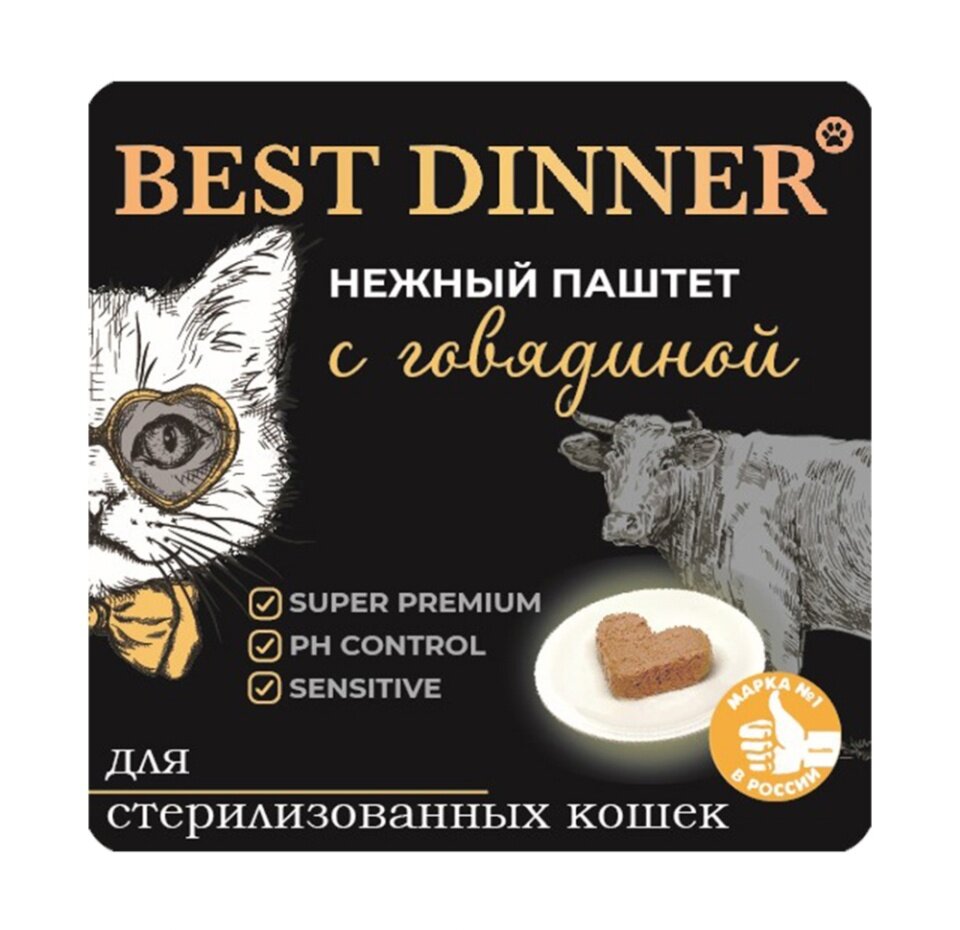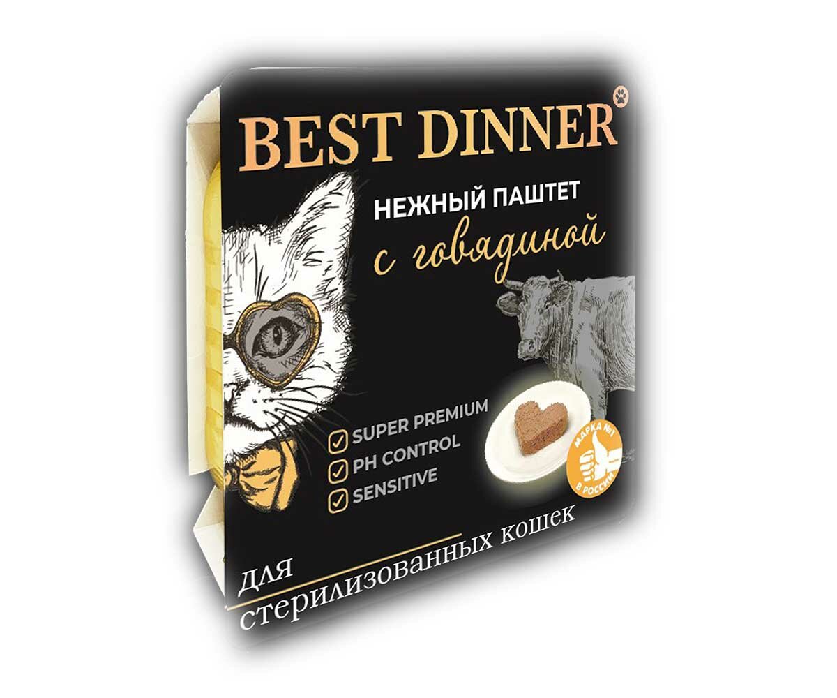 BEST DINNER для взрослых кастрированных котов и стерилизованных кошек паштет с говядиной 100г ламист 100 гр х 14 шт