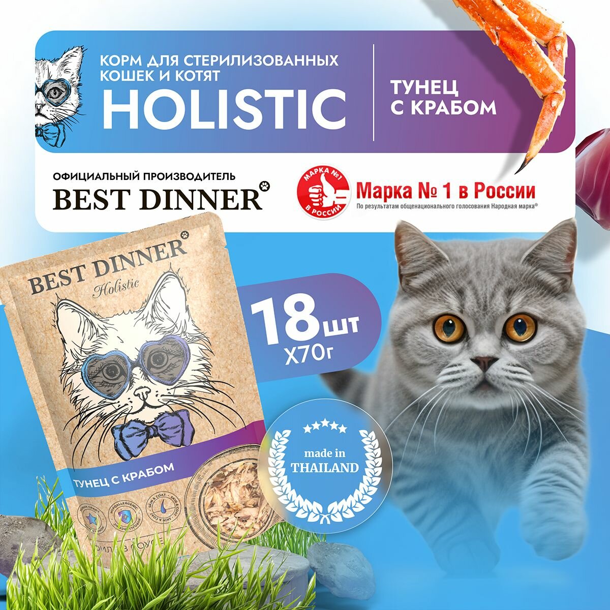 Купить Best Dinner Holistic 0,07кг тунец с крабом в соусе для кошек 18шт/1уп