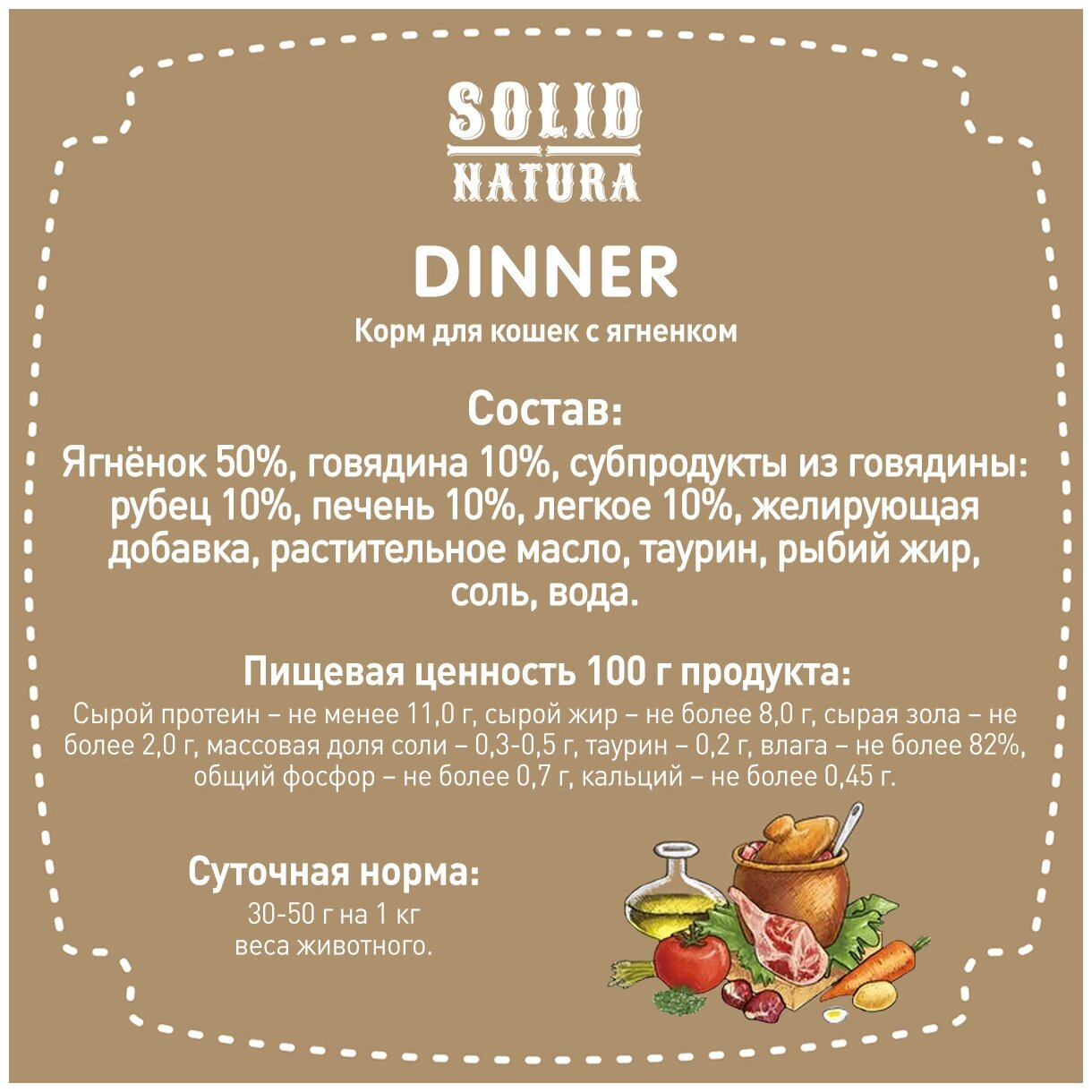 Корм влажный Solid Natura Dinner Ягненок для кошек, консервы, 340 гр