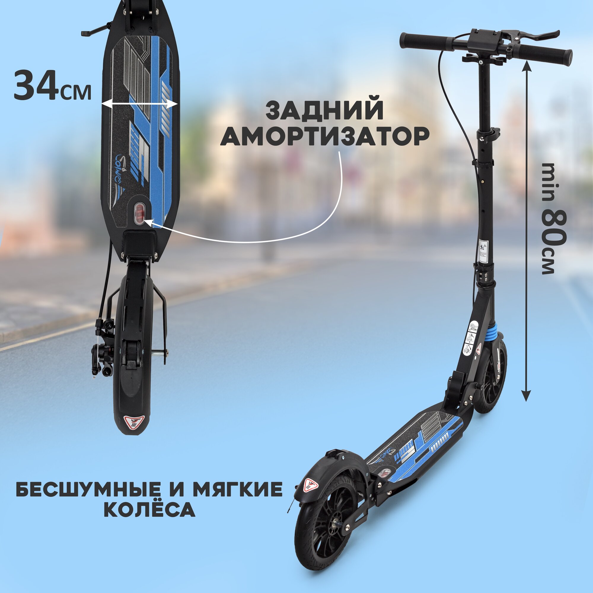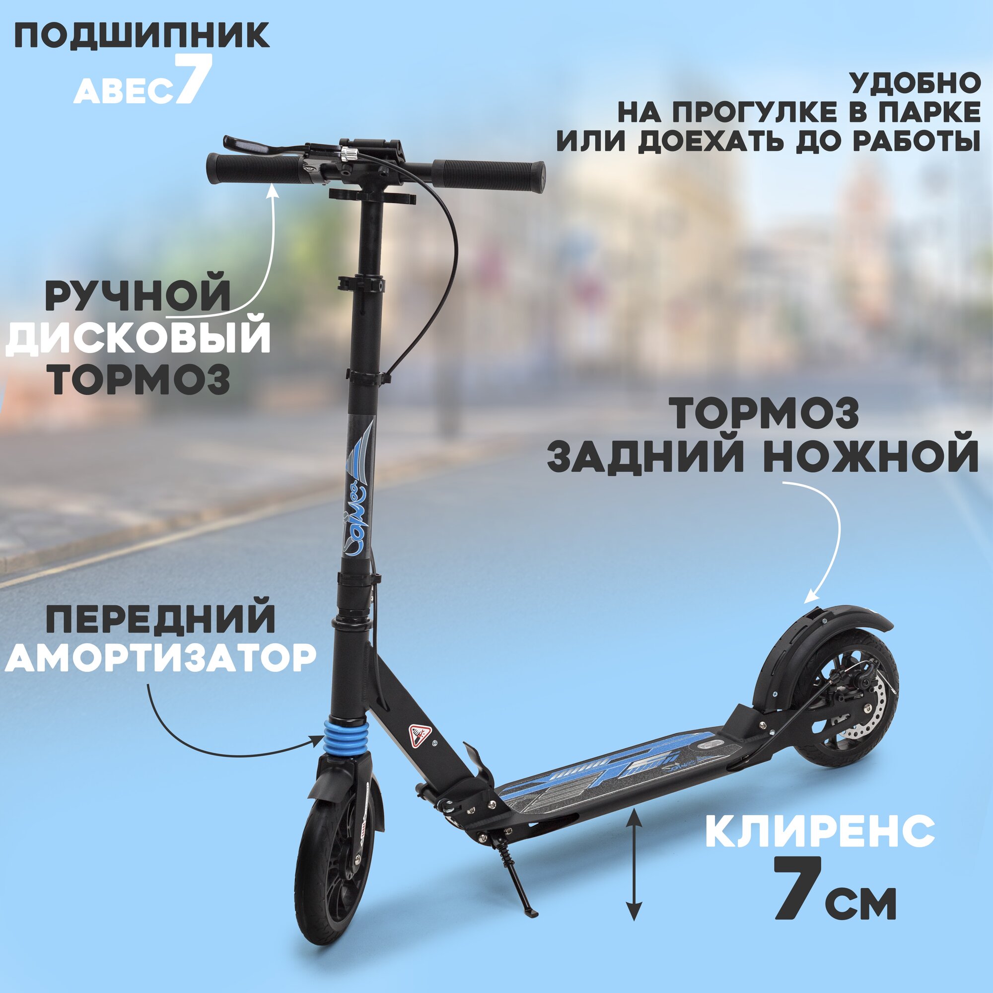 Самокат Saimaa A5D, с дисковым тормозом, складной, с амортизаторами, регулируемый руль, двухколесный городской, колеса 200 мм, черный