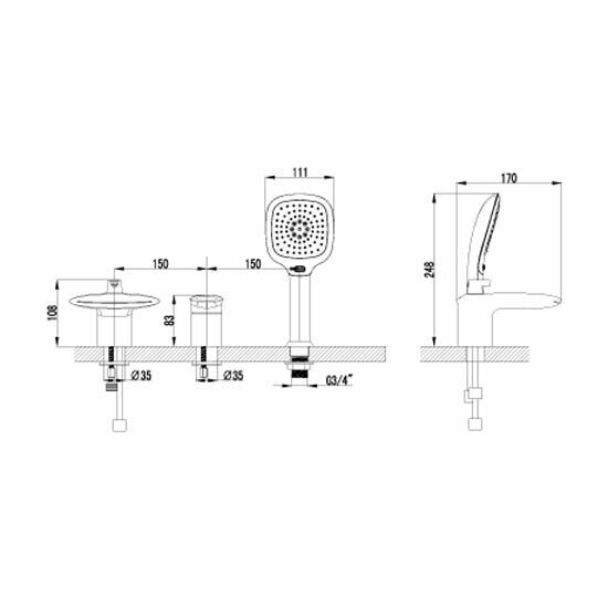 Смеситель для ванны "Status" Lemark, врезной на борт, тройка