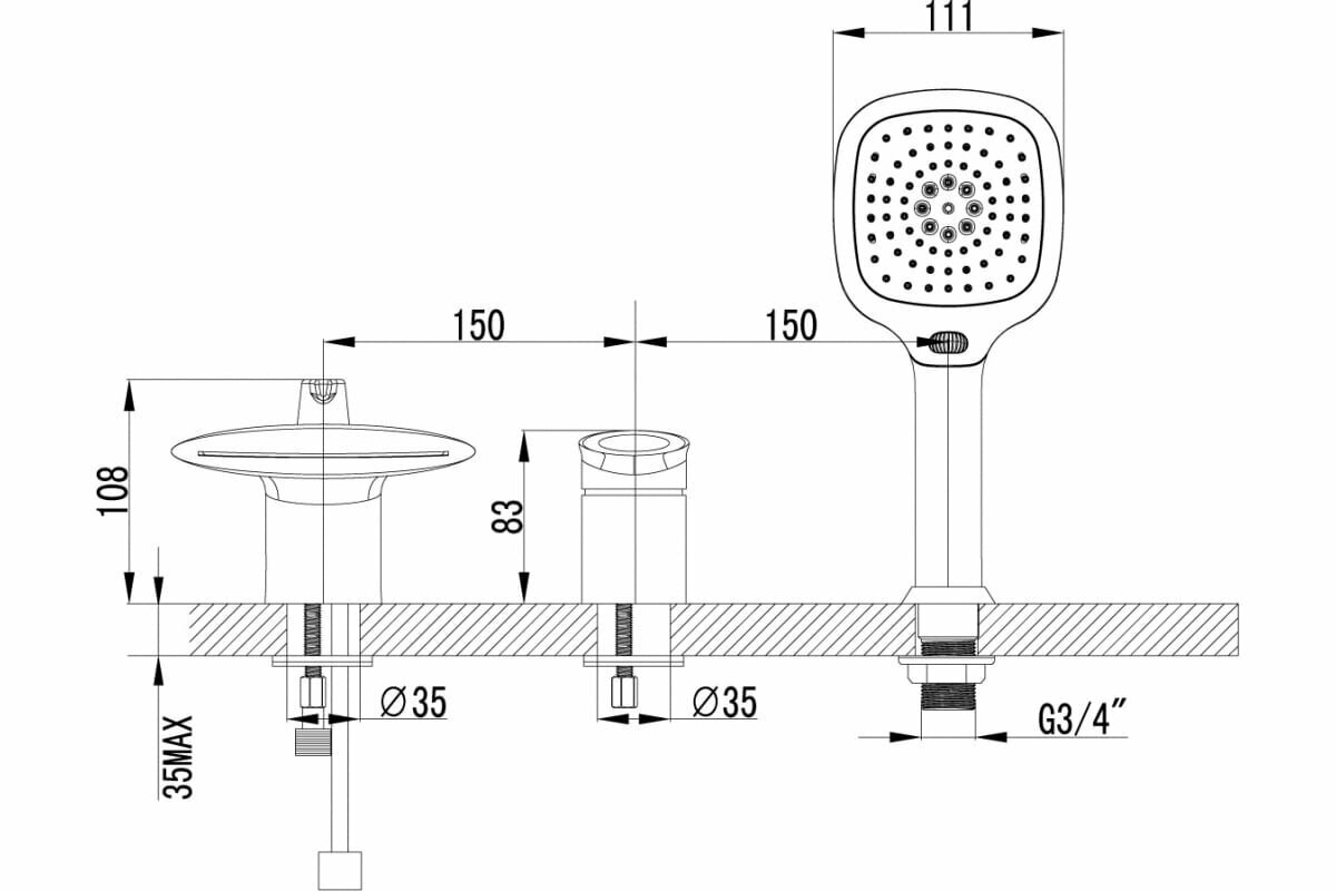 Смеситель встраиваемый Lemark Status LM4445C на борт ванны