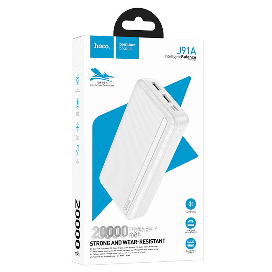 Внешний аккумулятор 20000 мАч J91A HOCO белый