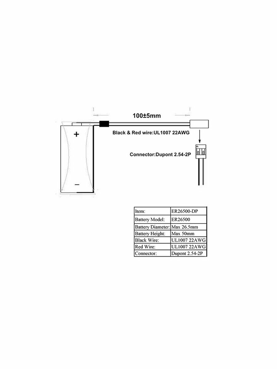 Батарейка 3.6 В с коннектором Dupont 2,54 (BLS-2) Robiton ER 26500-DP (C)