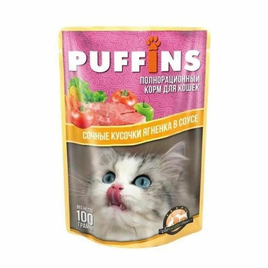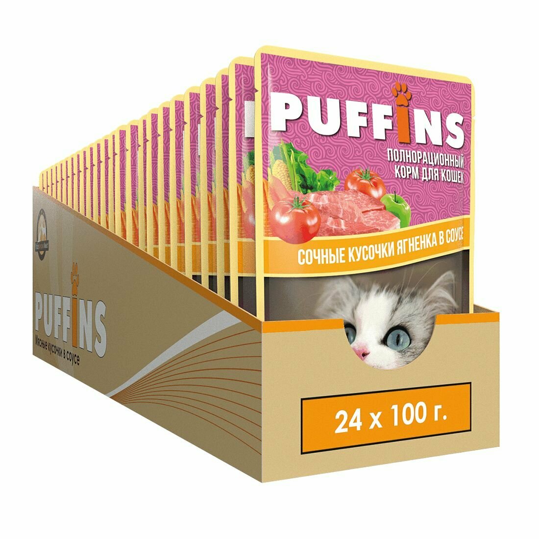 Купить Корм для кошек влажный Puffins , ягненок в соусе, 24 шт по 100 гр