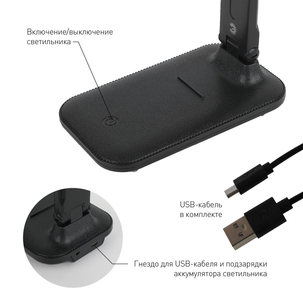 Светильник настольный ЭРА NLED-495-5W-BK светодиодный складной черный