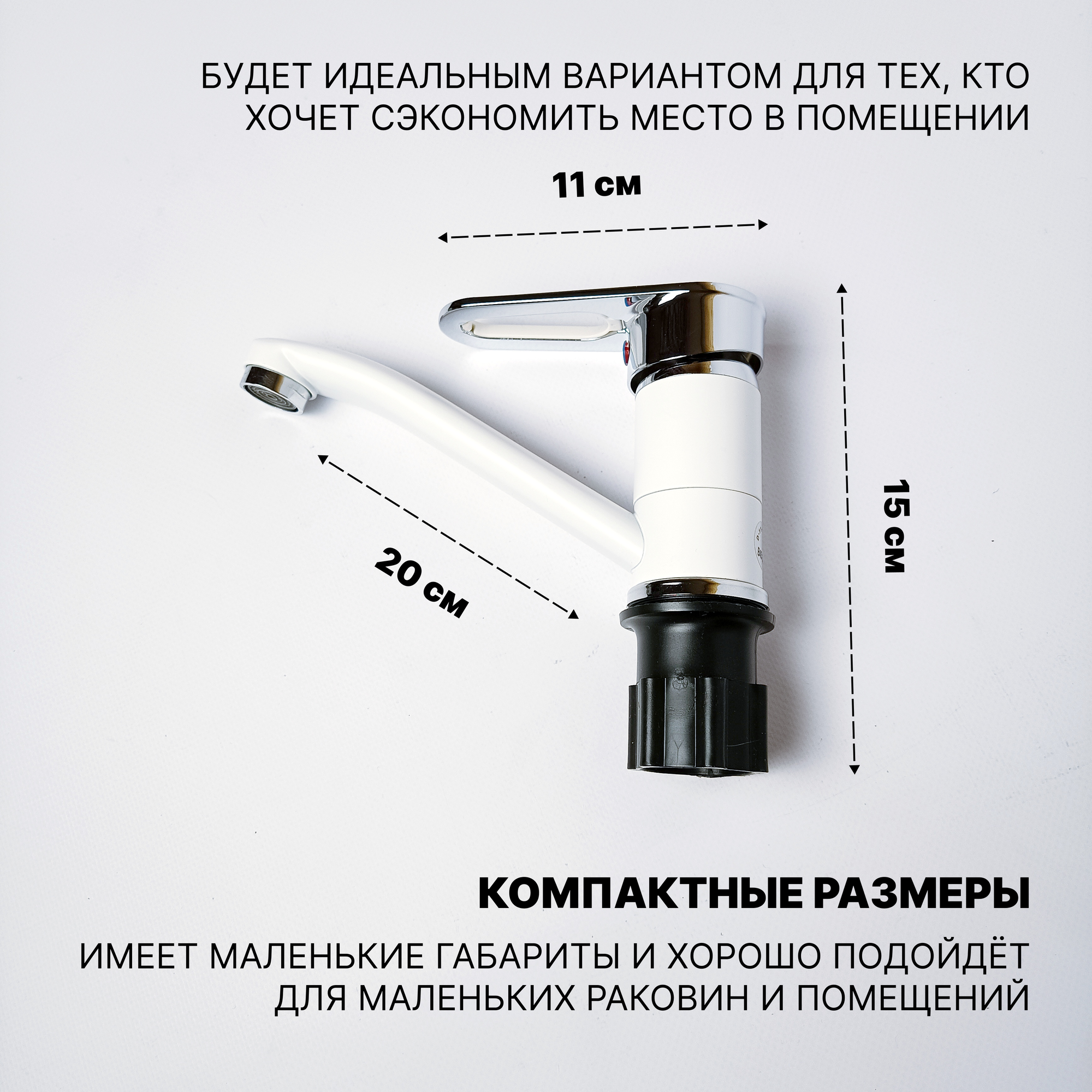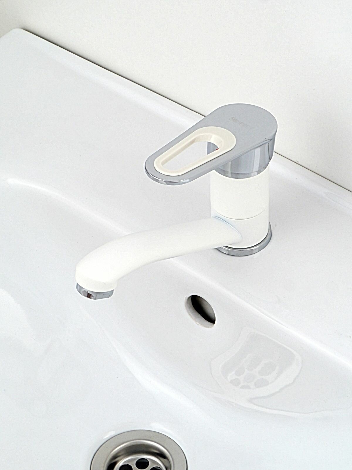 Купить Смеситель на раковину Эверест B45-274A с поворотным изливом, картридж 35 мм, белый, крепление гайка