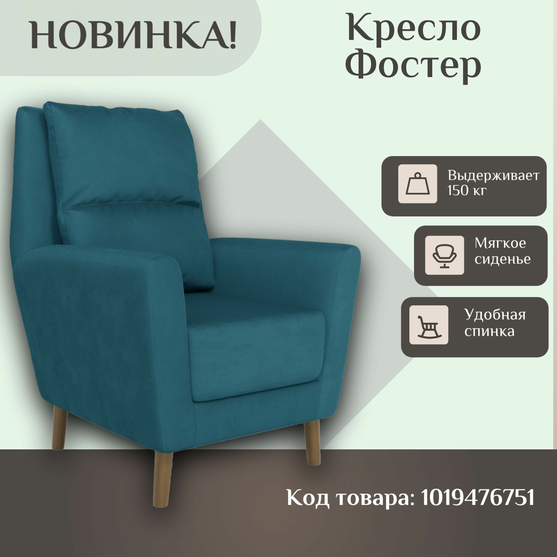 Кресло Либерти в гостиную, мягкое для дома и отдыха, велюр Zara azur 48