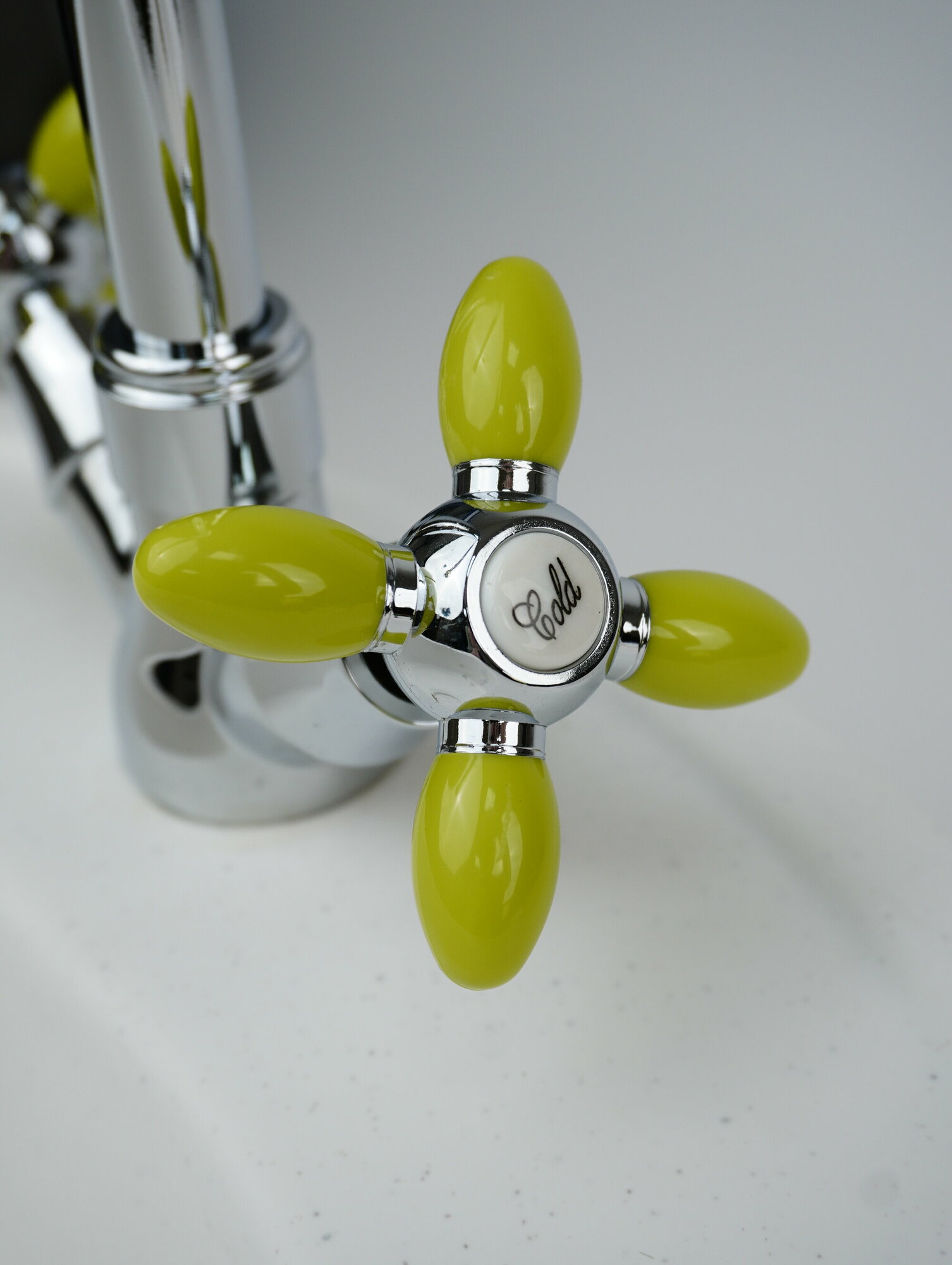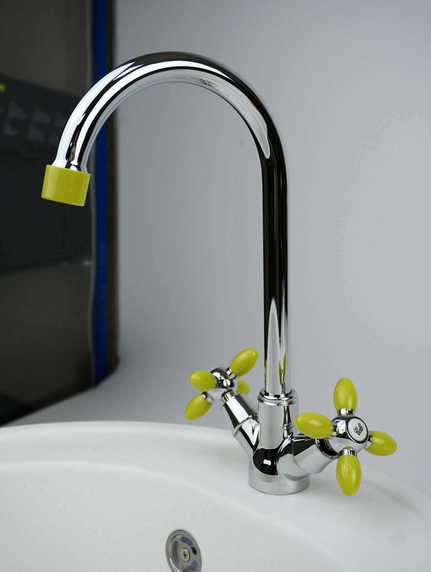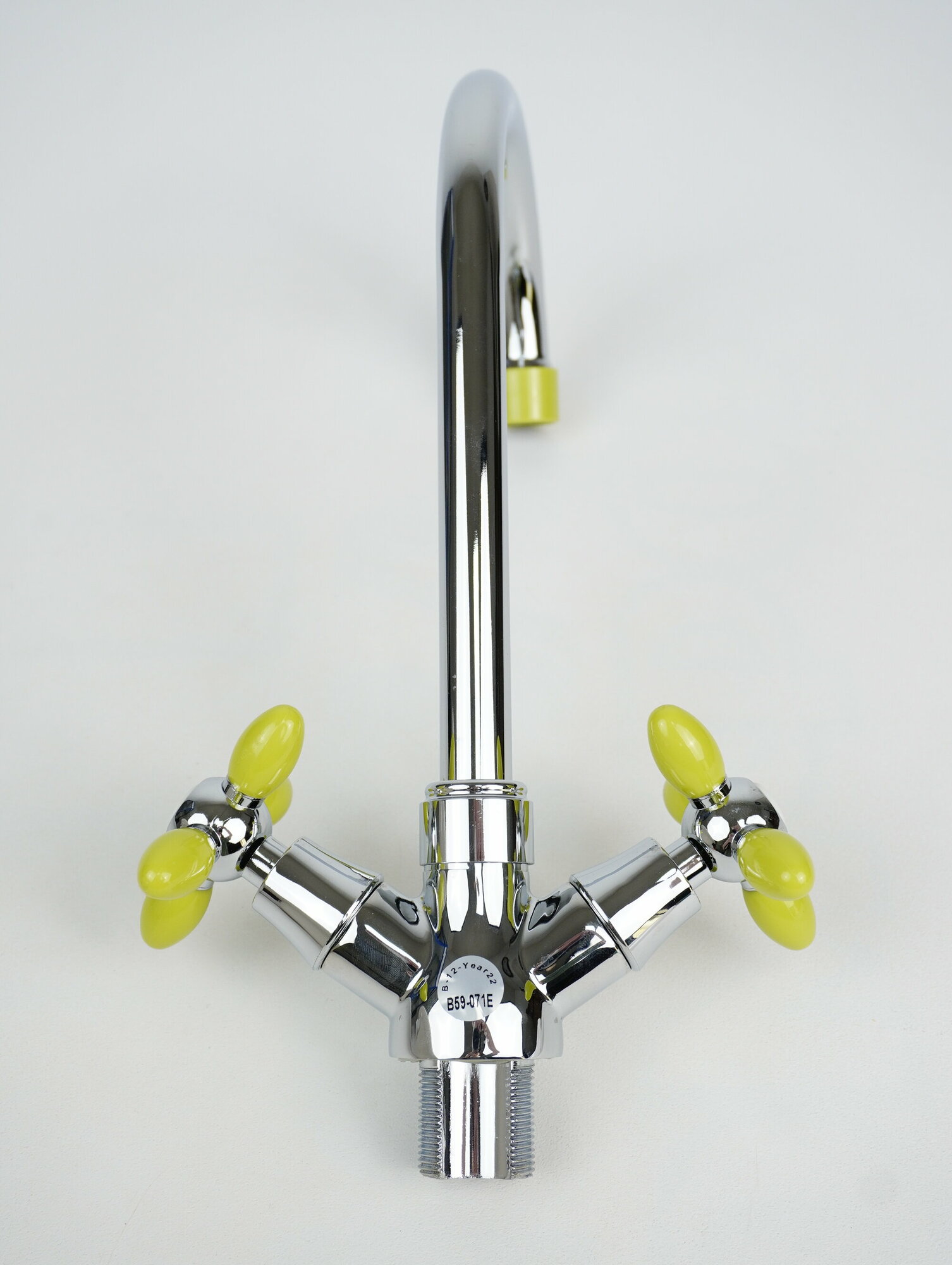 Смеситель д/кухни с высоким изливом, крепление гайка, зеленые ручки, Эверест (Россия), арт B59-071E