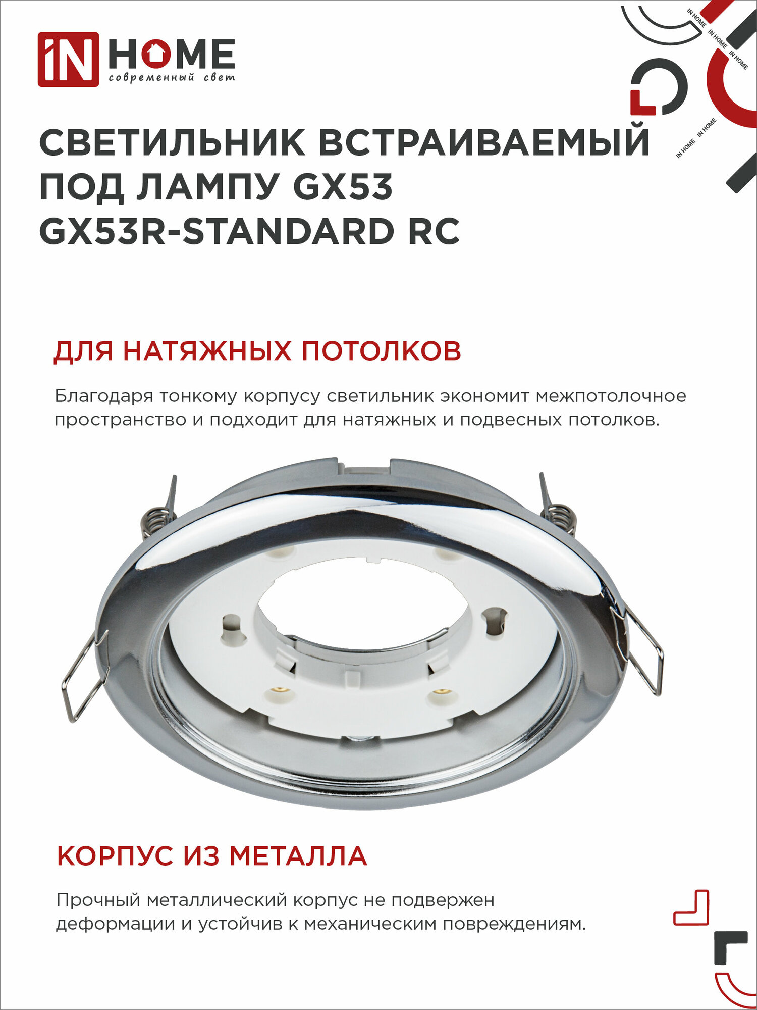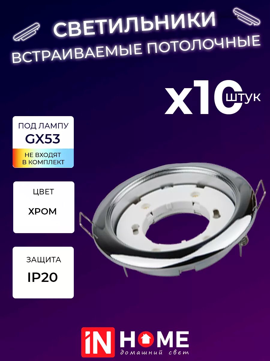 Светильник встраиваемый GX53R-standard RC-10PACK металл под лампу GX53 230В хром (уп.10шт), IN HOME 4690612036304 (1 упак)