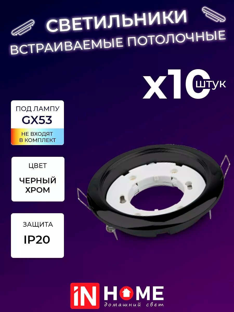 СохранитьСветильник встраиваемый точечный GX53R-standard RBC-10PACK под GX53 черный хром (10 шт./упак.) IN HOME интересное:
