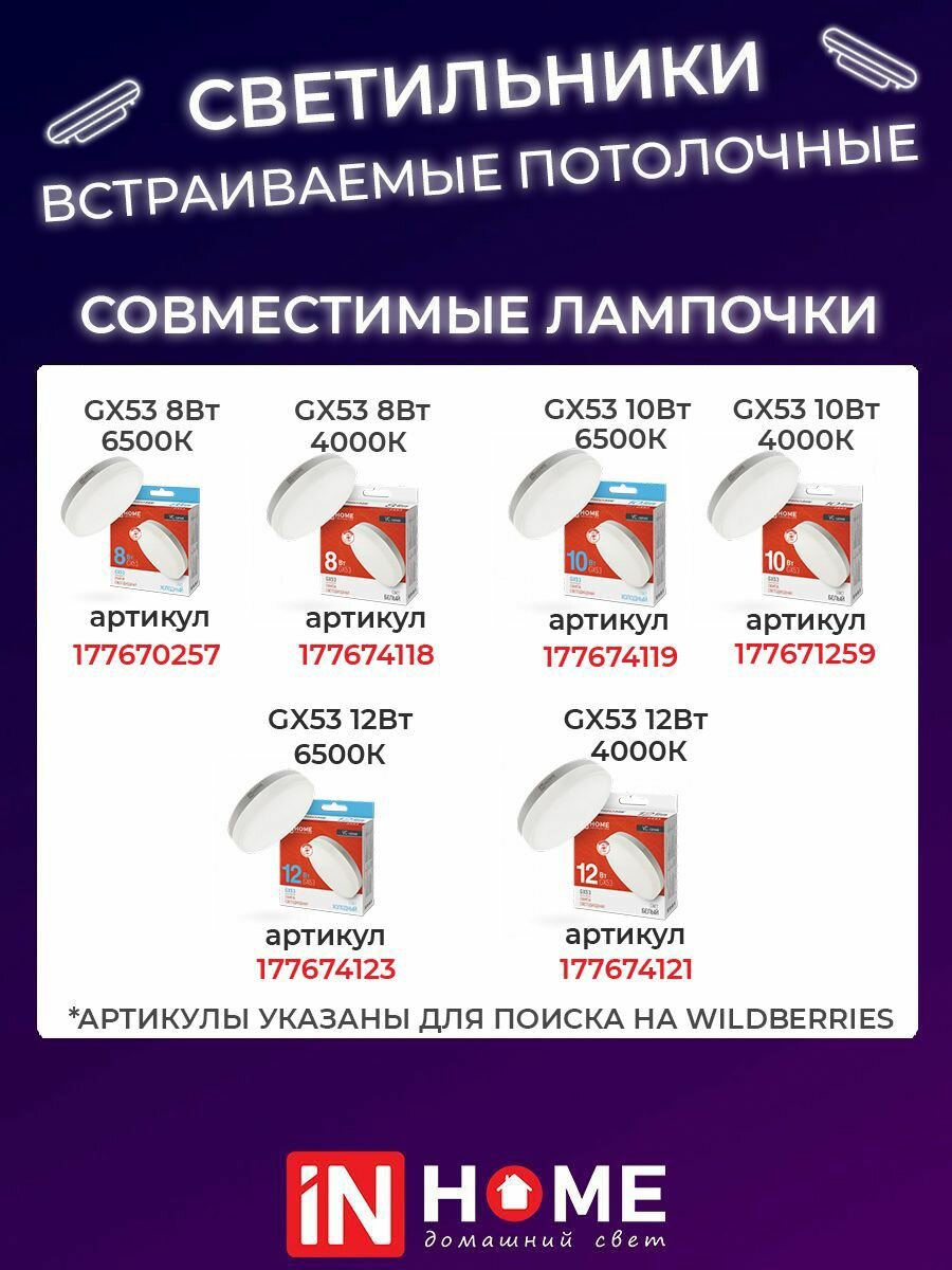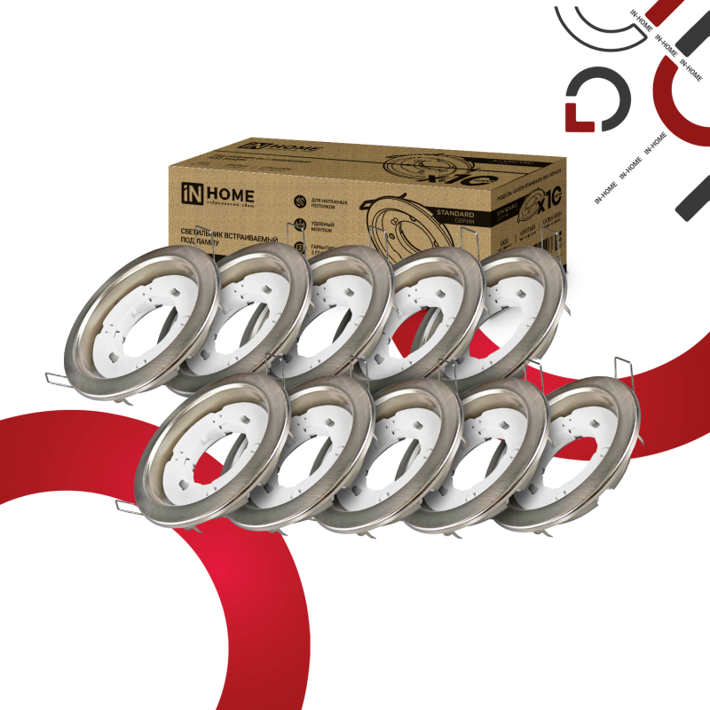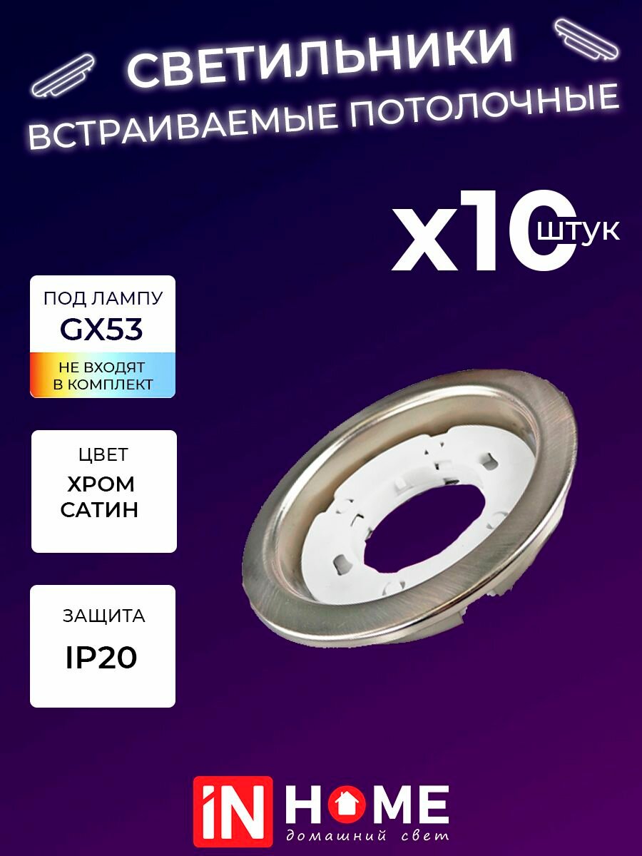 Светильник встраиваемый GX53R-standard RC-10PACK металл под лампу GX53 230В хром (уп.10шт), IN HOME 4690612036304 (1 упак)