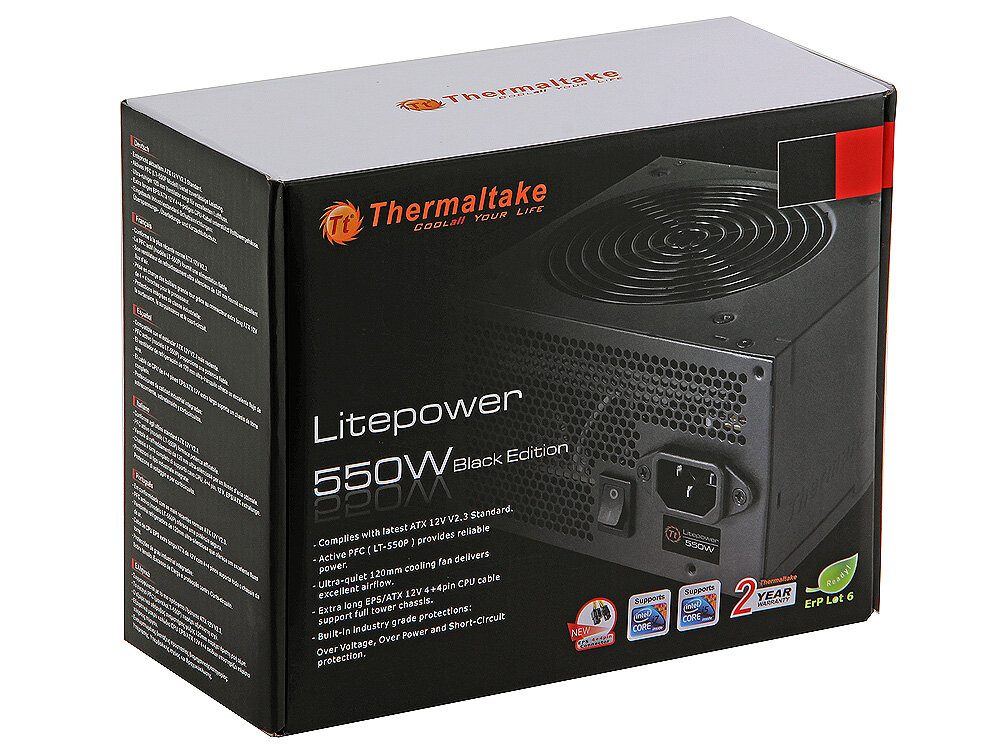 Ниже Вы можете прочитать отзывы на Блок питания 550W Thermaltake LT-550P КПД 85%,1x4+4 pin CPU,5 SATA,2х6+2 pin PCI-E, ознакомится с подробными характеристиками, посмотреть интересные обзоры и фотографии на Блок питания 550W Thermaltake LT-550P КПД 85%,1x4+4 pin CPU,5 SATA,2х6+2 pin PCI-E.
