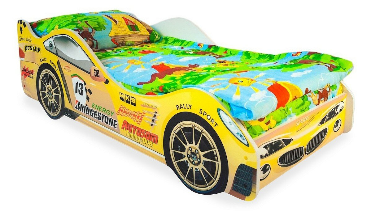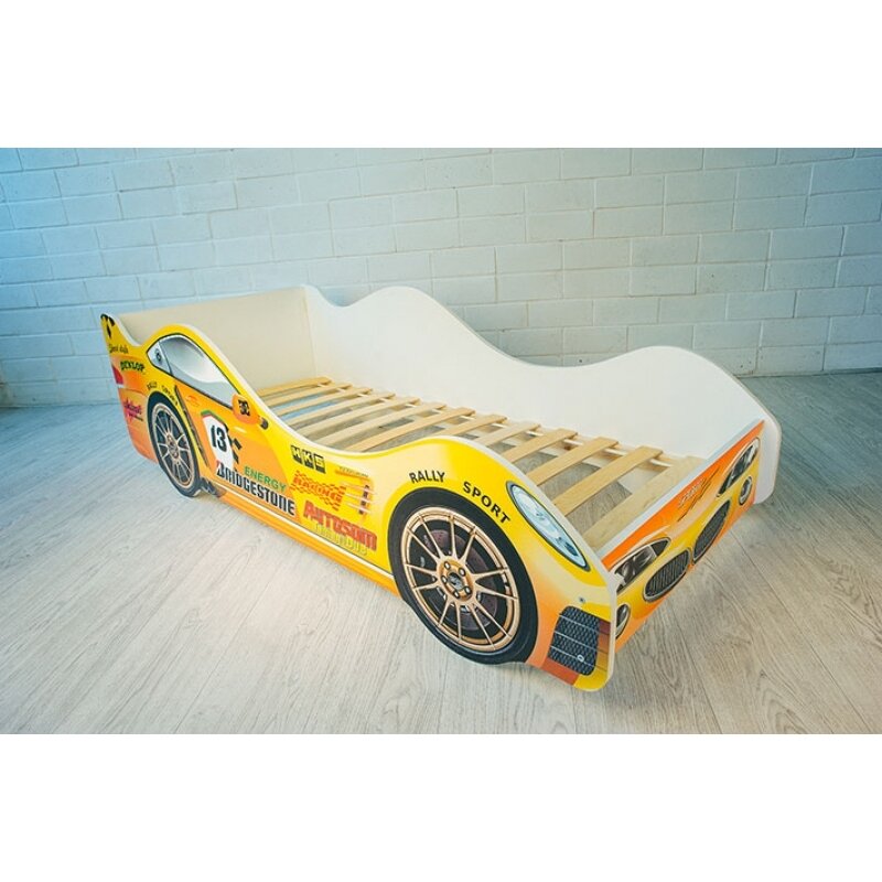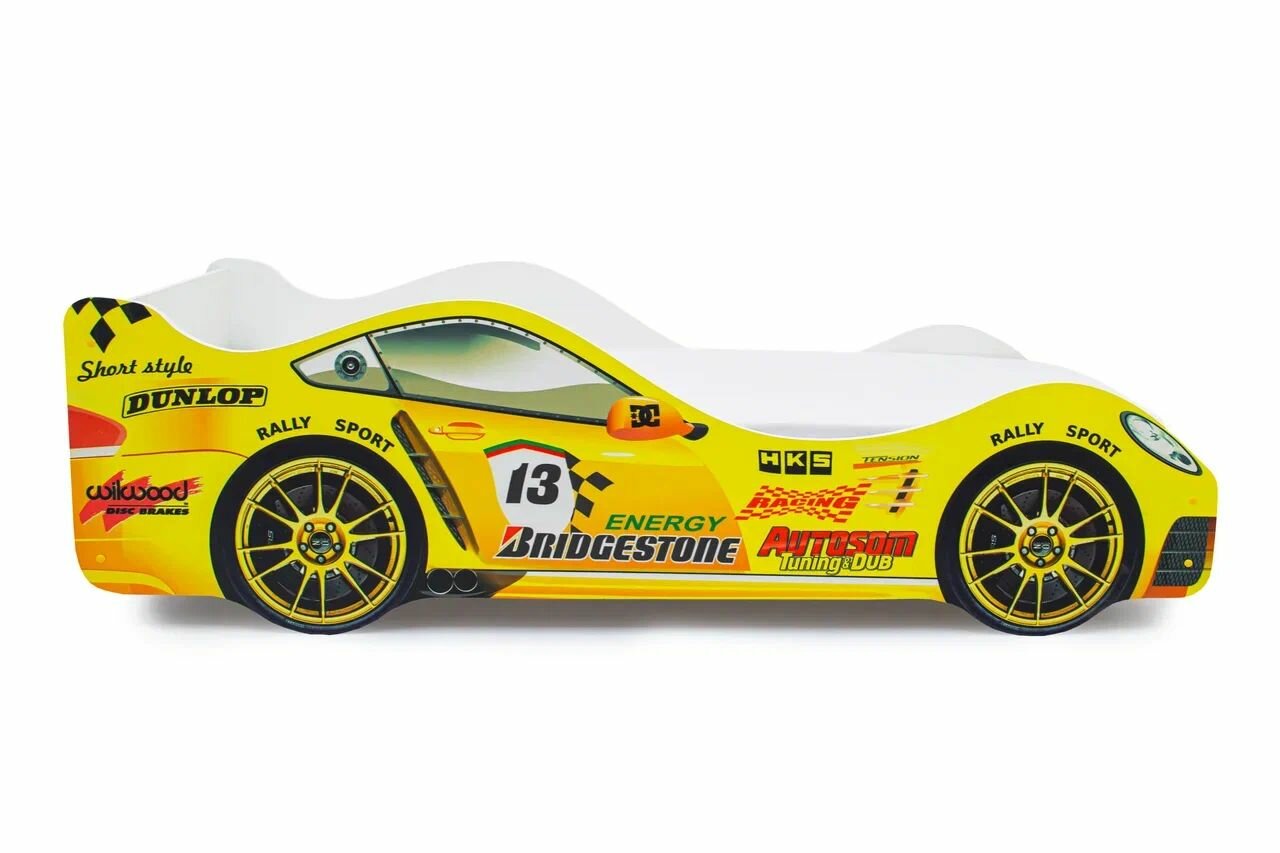 Детская кровать машина Тачка желтая с ортопедическим основанием и бортиком