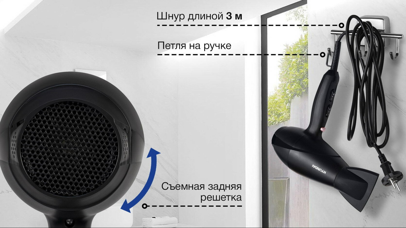 Фен HYUNDAI H-HDI 0750 черный интересное: