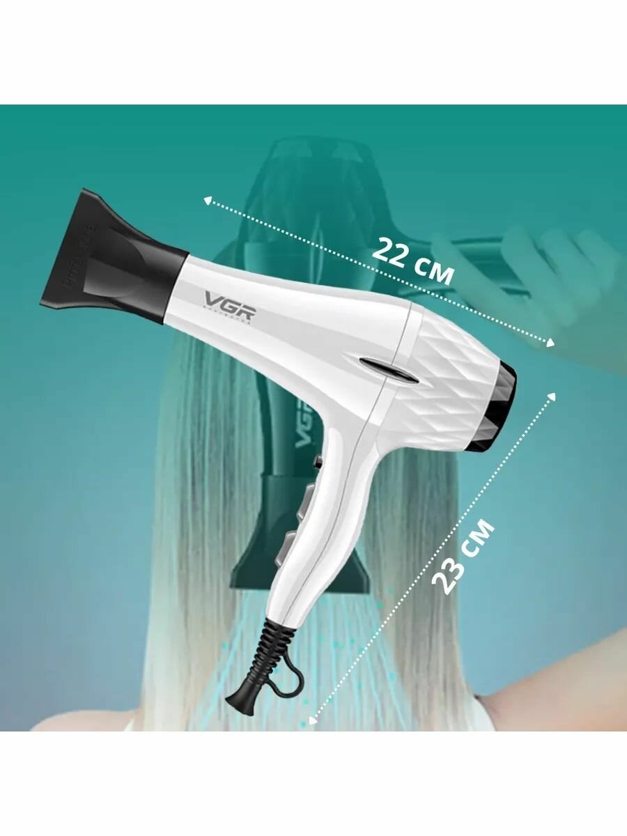 Фен VGR V-463, мощность 2000 Вт, 3 температурных режима, керамический/титаново-турмалиновый