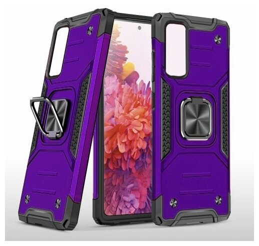 Купить Противоударный чехол для Samsung Galaxy A51 А515 фиолетовый с пластиной для магнитного автодержателя и кольцом подставкой