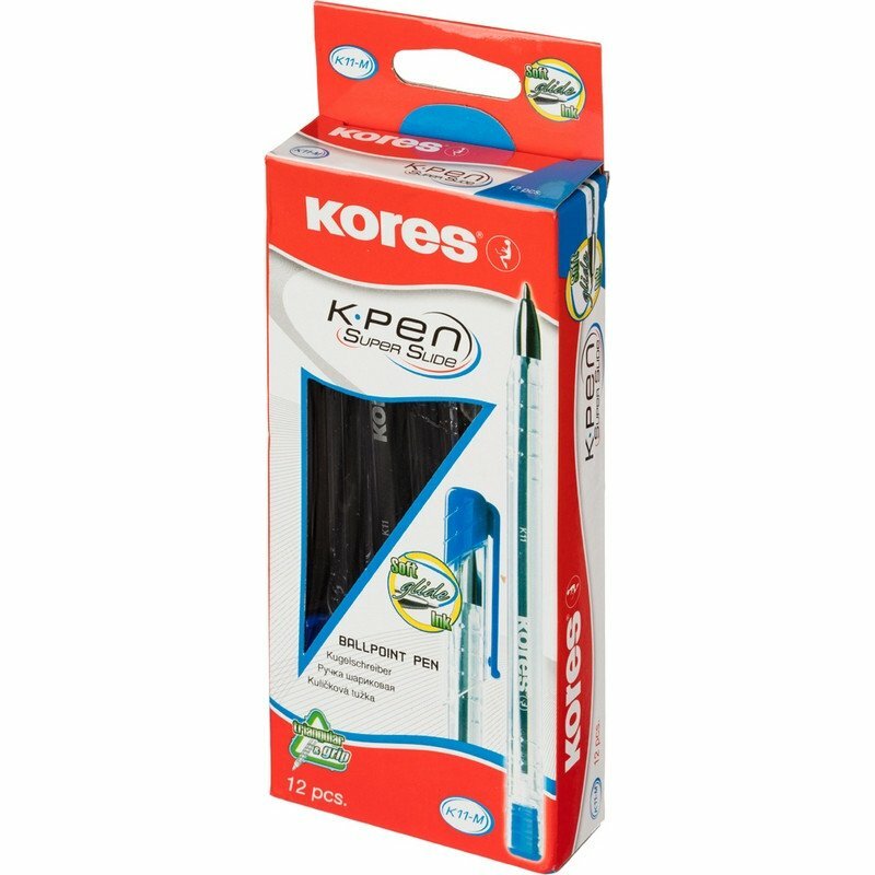 Ручка шариковая Kores К11 (0.7мм, синий цвет чернил, корпус прозрачный, масляная основа, трехгранная) 12шт.