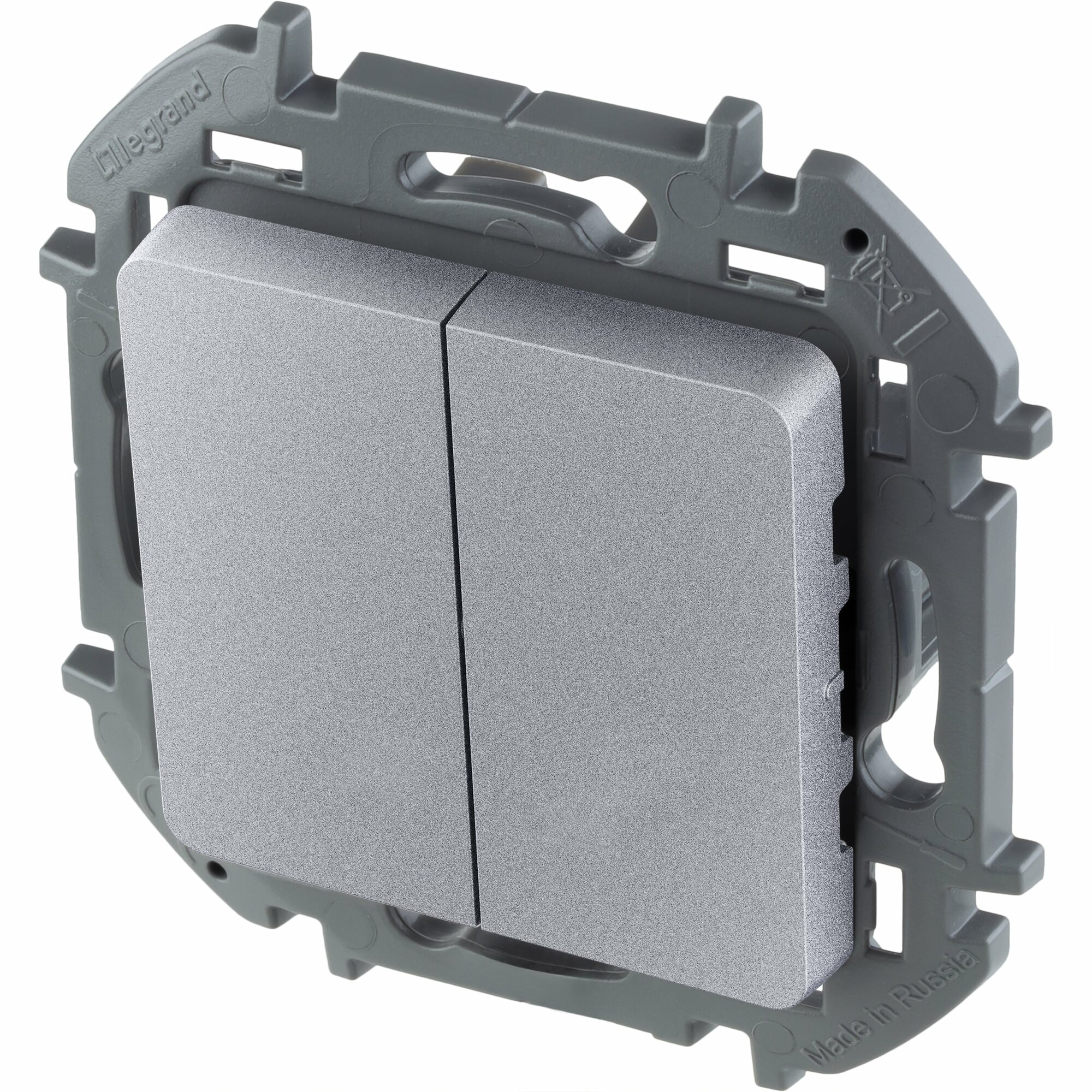 Выключатель 2-х клавишный Legrand Inspiria для скрытого монтажа, цвет - алюминий
